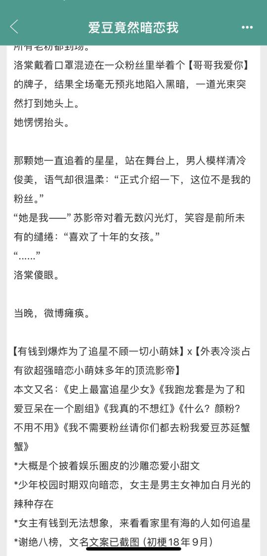 有钱到爆炸为了追星不顾一切小萌妹VS外表冷淡占有欲超 强暗恋小萌妹多年的顶 流影帝 超级甜啊啊啊