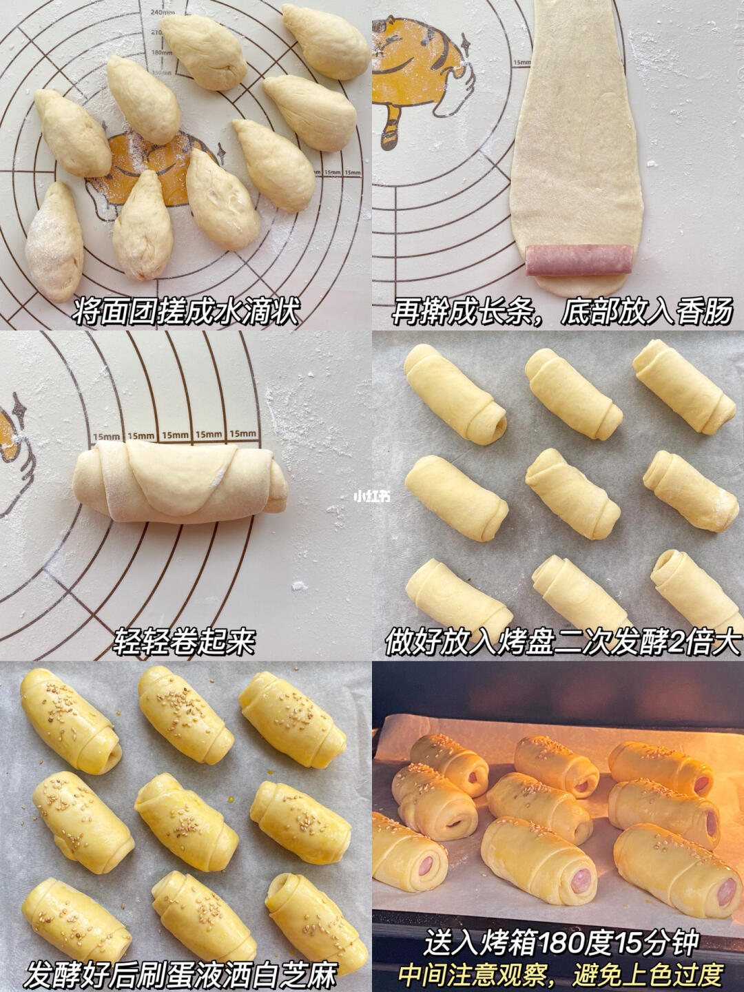 ✅此配方大概可以做9-10个小面包。香肠我用的脆皮肠,刚出炉会一口爆汁。