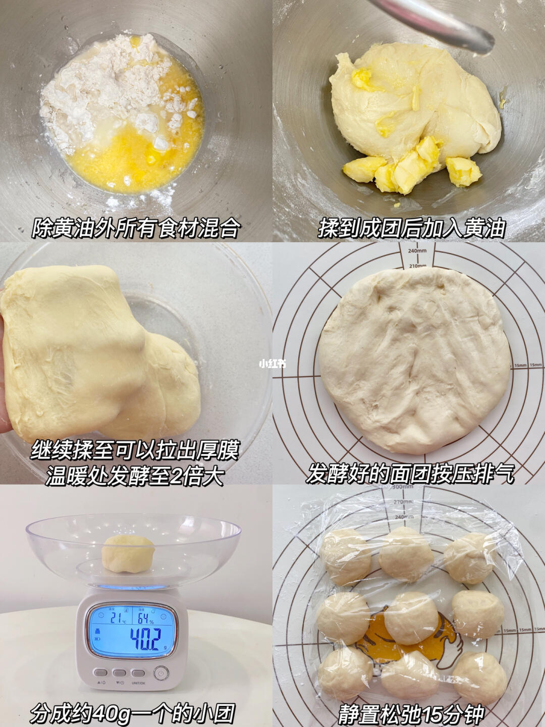 2⃣️发酵好的面团按压排气,分成约40g一个的小团,静置松弛15分钟。