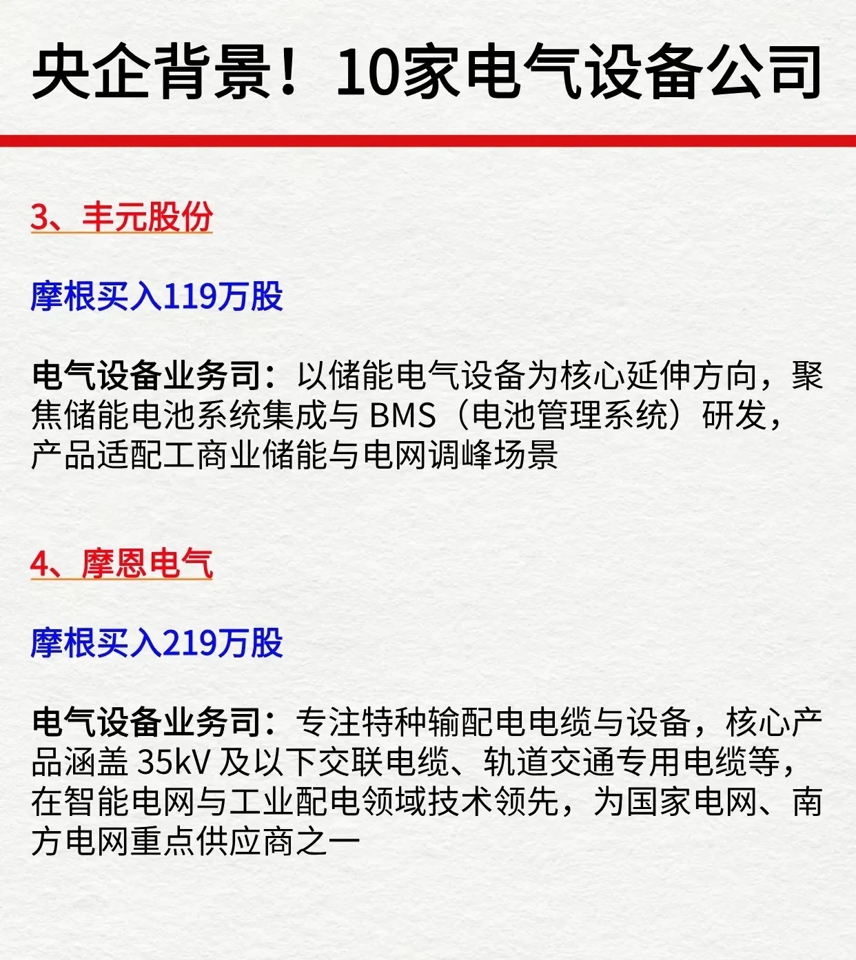 (4)中能电气新能源充电基础设施核心供应商,获摩根資本买入。