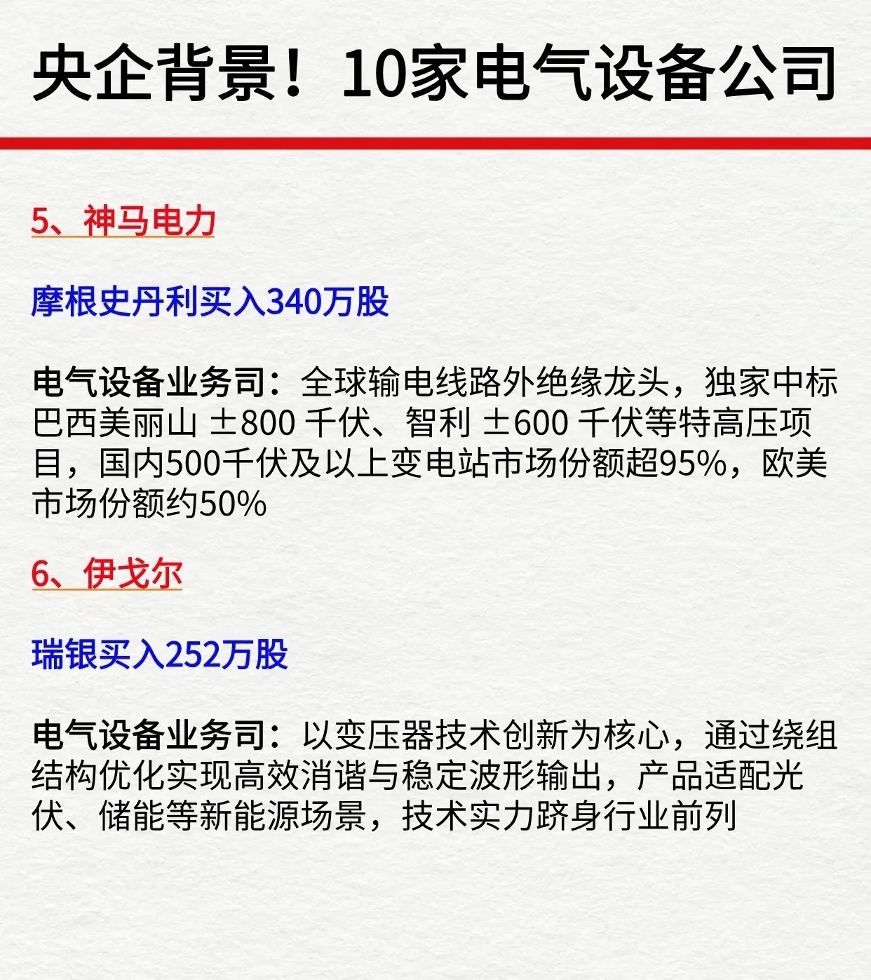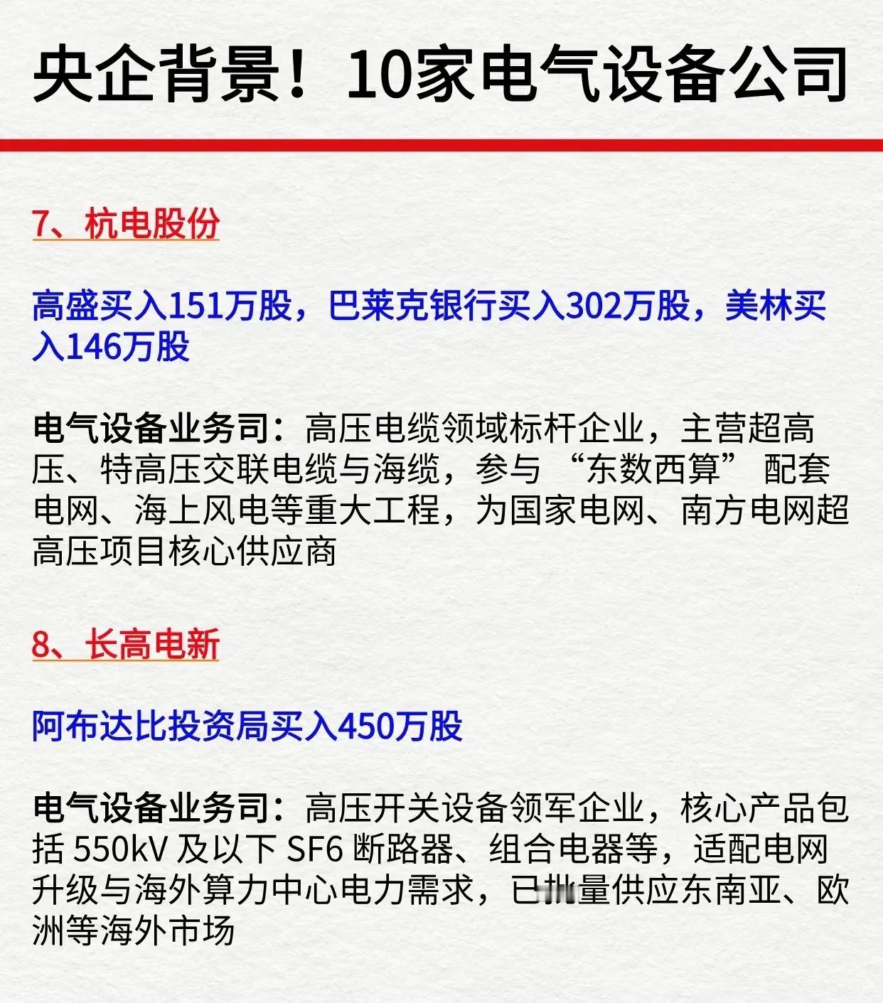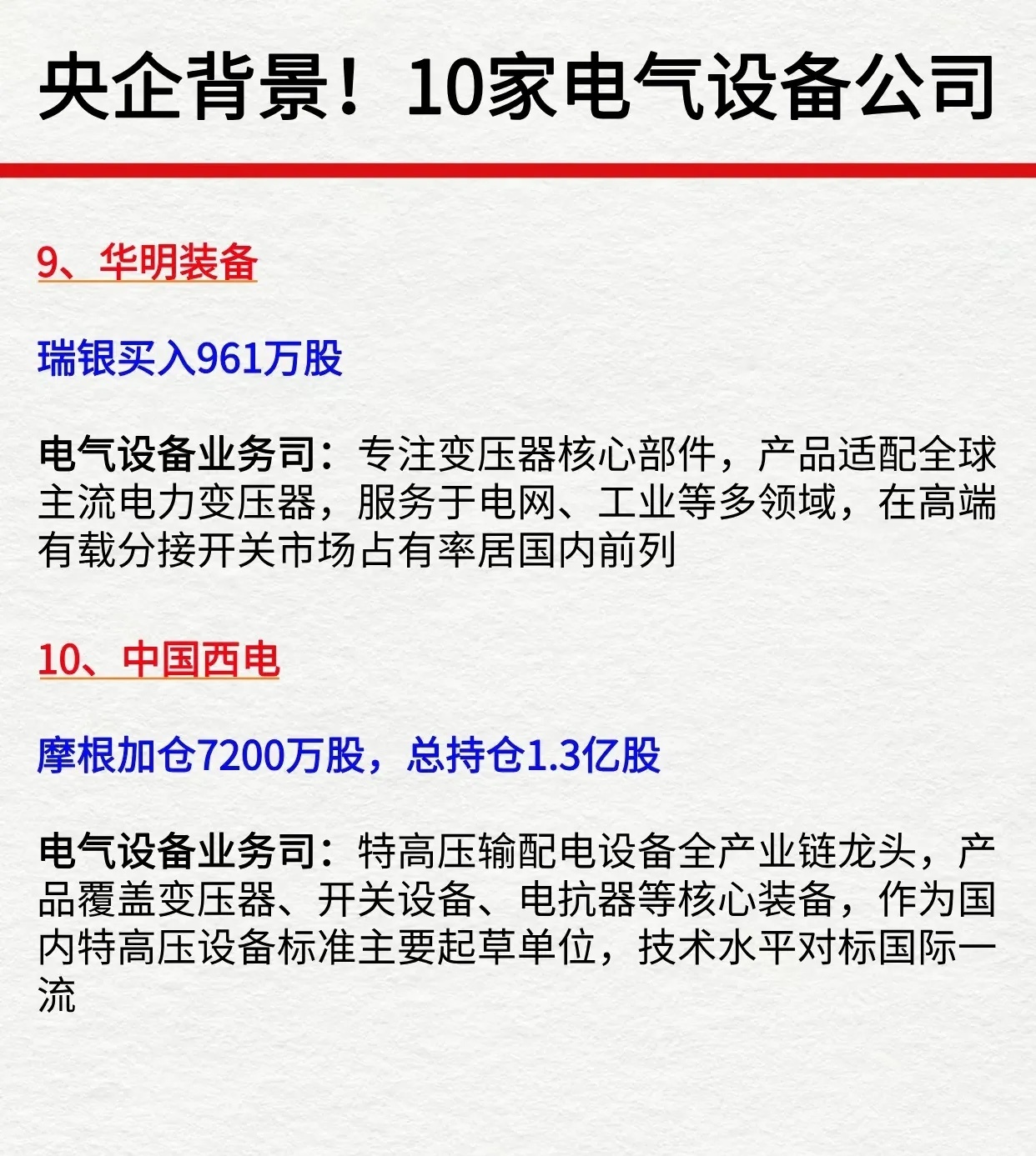央企背景+外资重仓!电气设备赛道10大潜力龙头梳理介绍!电气设备领域风口正劲,10家央国企背景企业凭硬核实力获外资重仓布局!