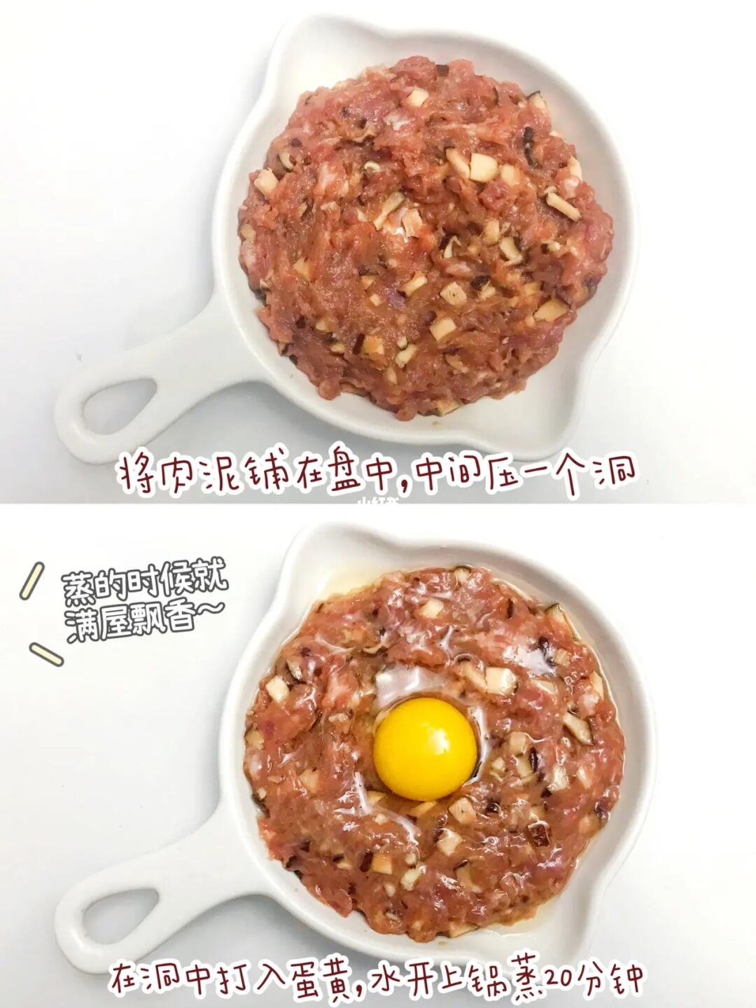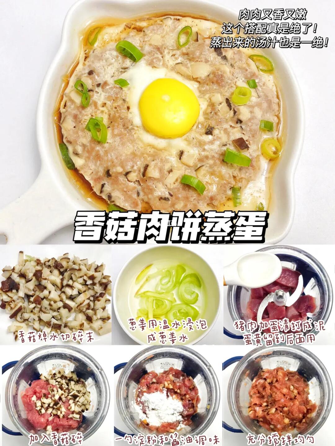 ❤️香菇肉饼蒸蛋肉质更加Q弹一些,香菇的味道也香香的,蒸出来的汤汁也是一绝。
