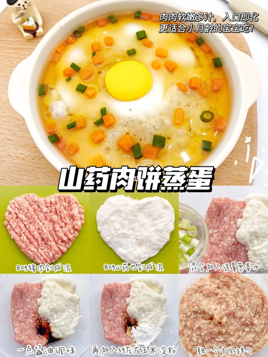 🤎山药肉饼蒸蛋口感上更加软糯一些,一抿即化,没牙的宝宝也能吃。