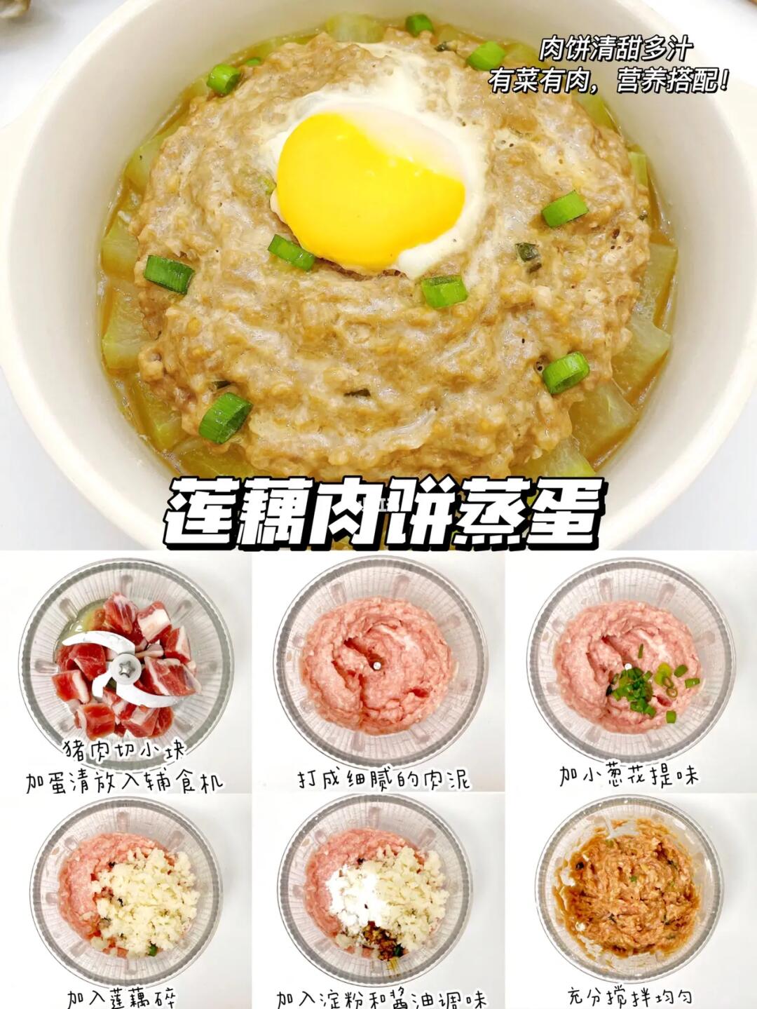 🤍莲藕肉饼蒸蛋会有一点脆脆的感觉,清甜不腻,秋天正式吃莲藕的季节呀。