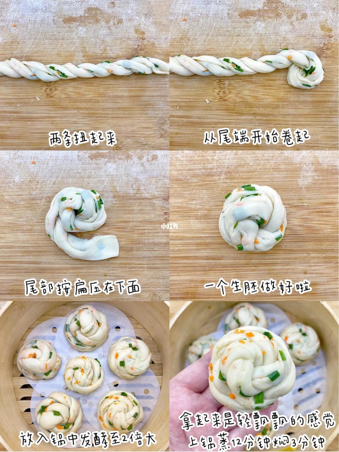 ✅做面食我一般会用一次发酵的做法,比较节省时间。面团混合后要充分的揉光滑再整理形状,做好后再放入锅中发酵,蒸出来的馒头一样松软。