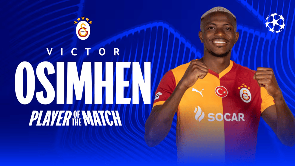 奥斯梅恩本场比赛上演帽子戏法,包揽全场所有进球。赛后,他被欧冠官方评选为本场比赛全场最佳。