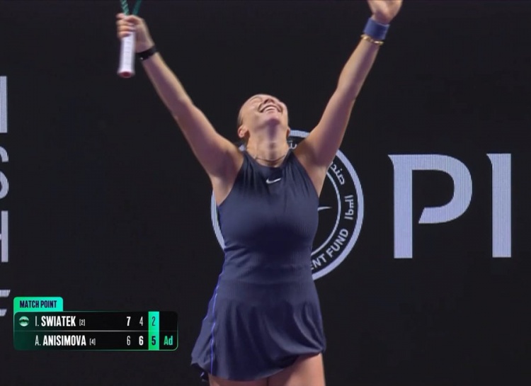 4号种子阿尼西莫娃以6-7(3)6-46-2逆转前赛会冠军、2号种子斯瓦泰克,继美网之后再胜对手,以小组赛2胜1负的战绩出线,首次亮相总决赛便成功晋级四强!