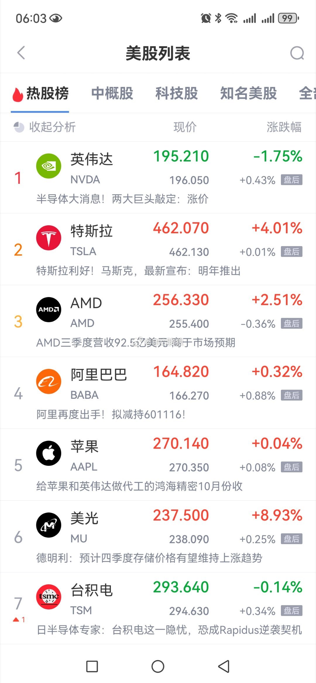 隔夜美股三大全线收涨,科技板块多数上涨、中概股多数上涨,英伟达下跌天、特斯拉、A