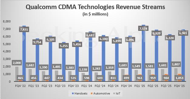 其他业务方面,高通汽车业务板块营收在第四季度首次突破10亿美元,达10.5亿美元,同比增长17%,超出分析师预期的10.1亿美元。物联网业务营收达18.1亿美元,同比增长7%。