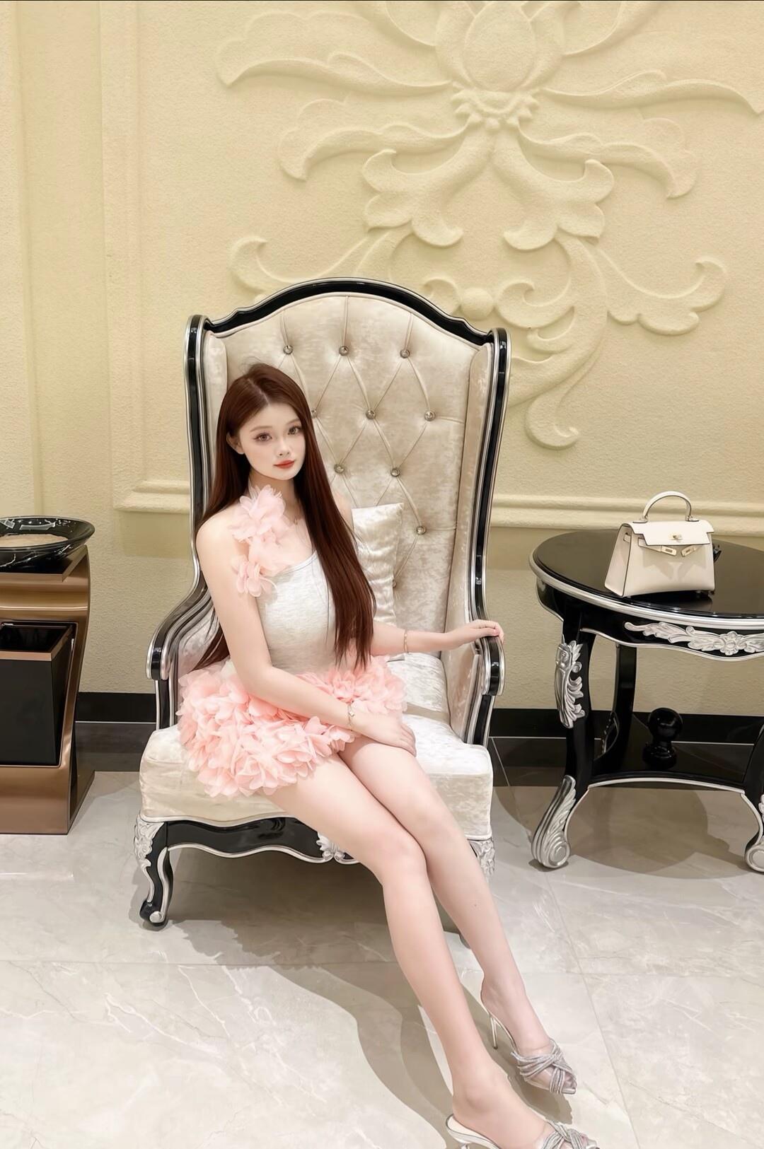 优雅少女心,粉色花裙坐复古椅,美得令人窒息!🌸👗👠