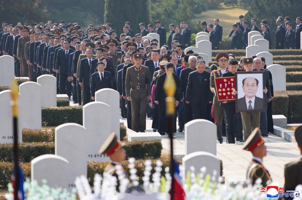 朝鲜劳动党中央委员会政治局常务委员会委员等国家治丧委员会成员,党中央委员会、最高人民会议常任委员会、内阁、各省和中央一级机关、武力机关干部和故人家属参加了葬礼。