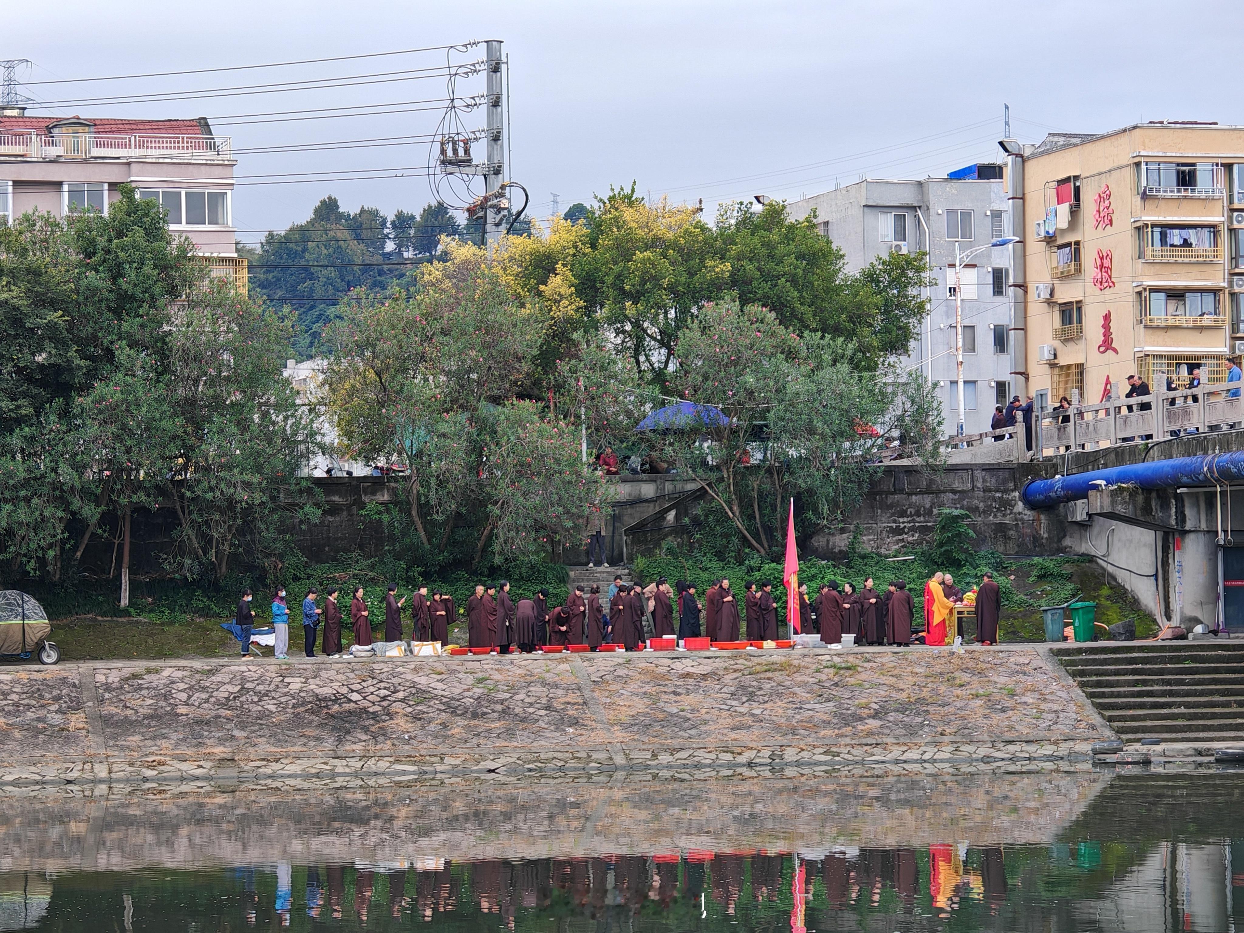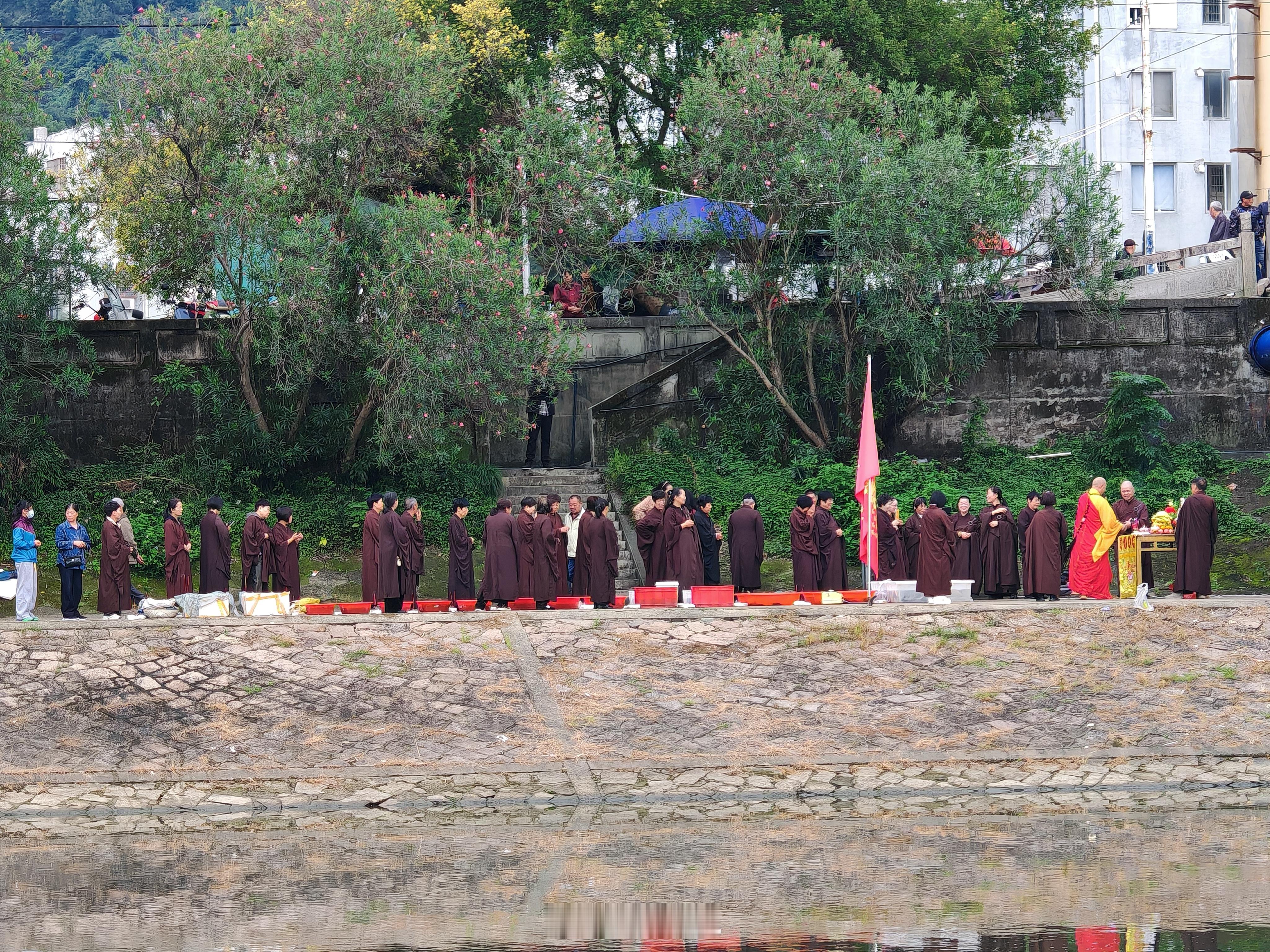 温州某县,河边放生,还专门请来和尚主持仪式……