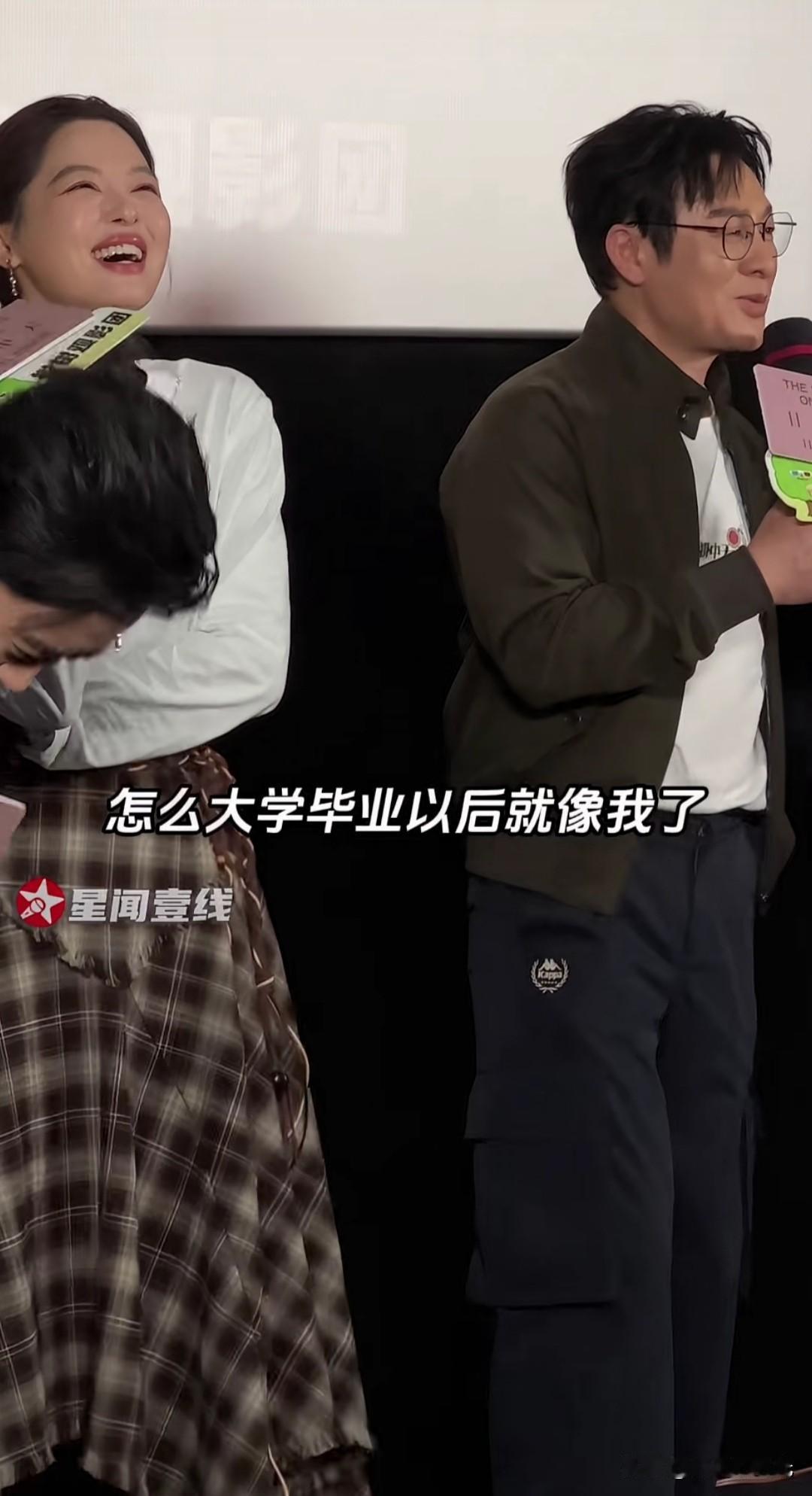 辛芷蕾:这一波出其不意太好笑了。 《日挂中天》发布会上,有记者对辛芷蕾说,大学