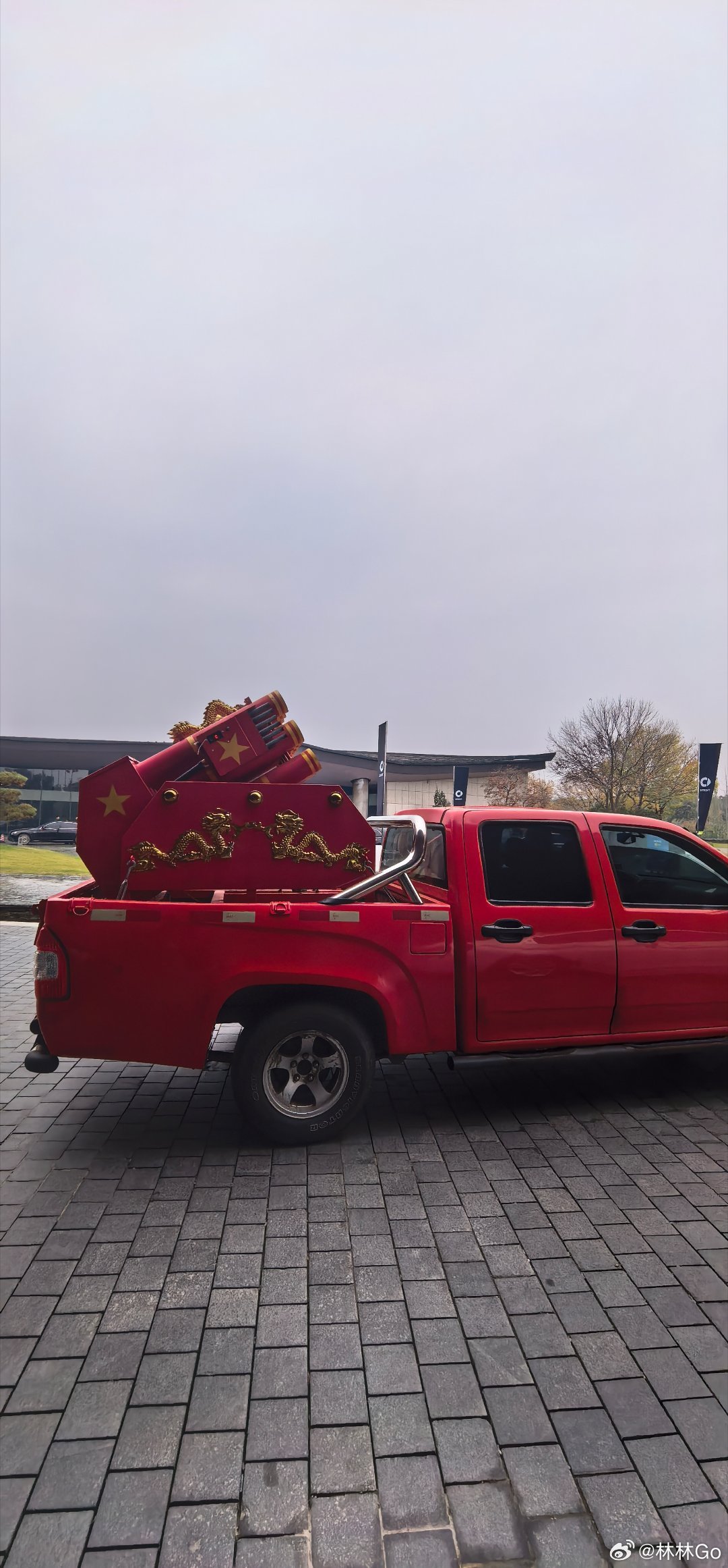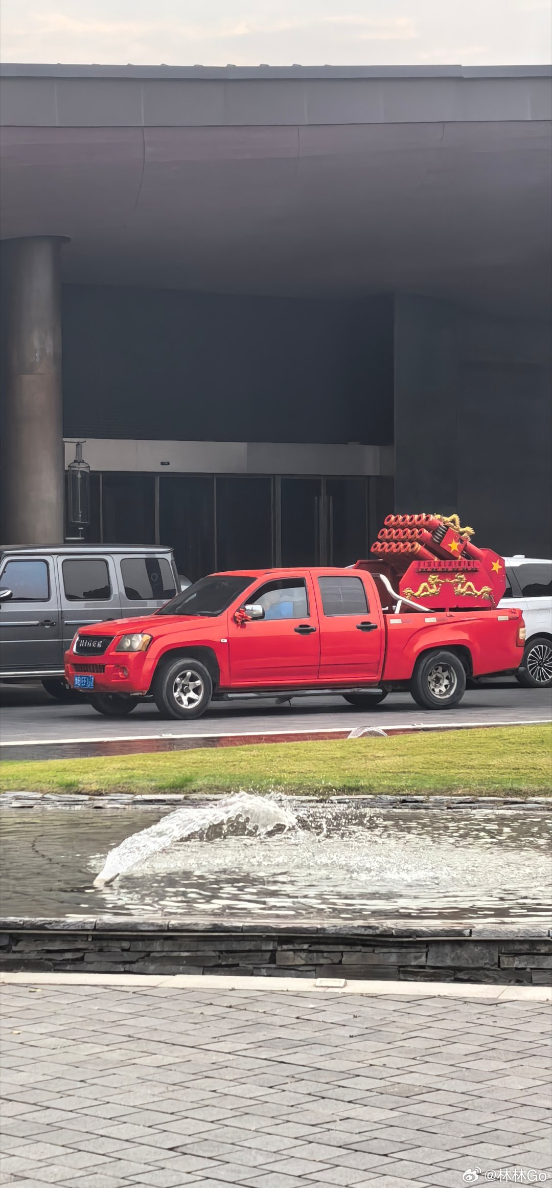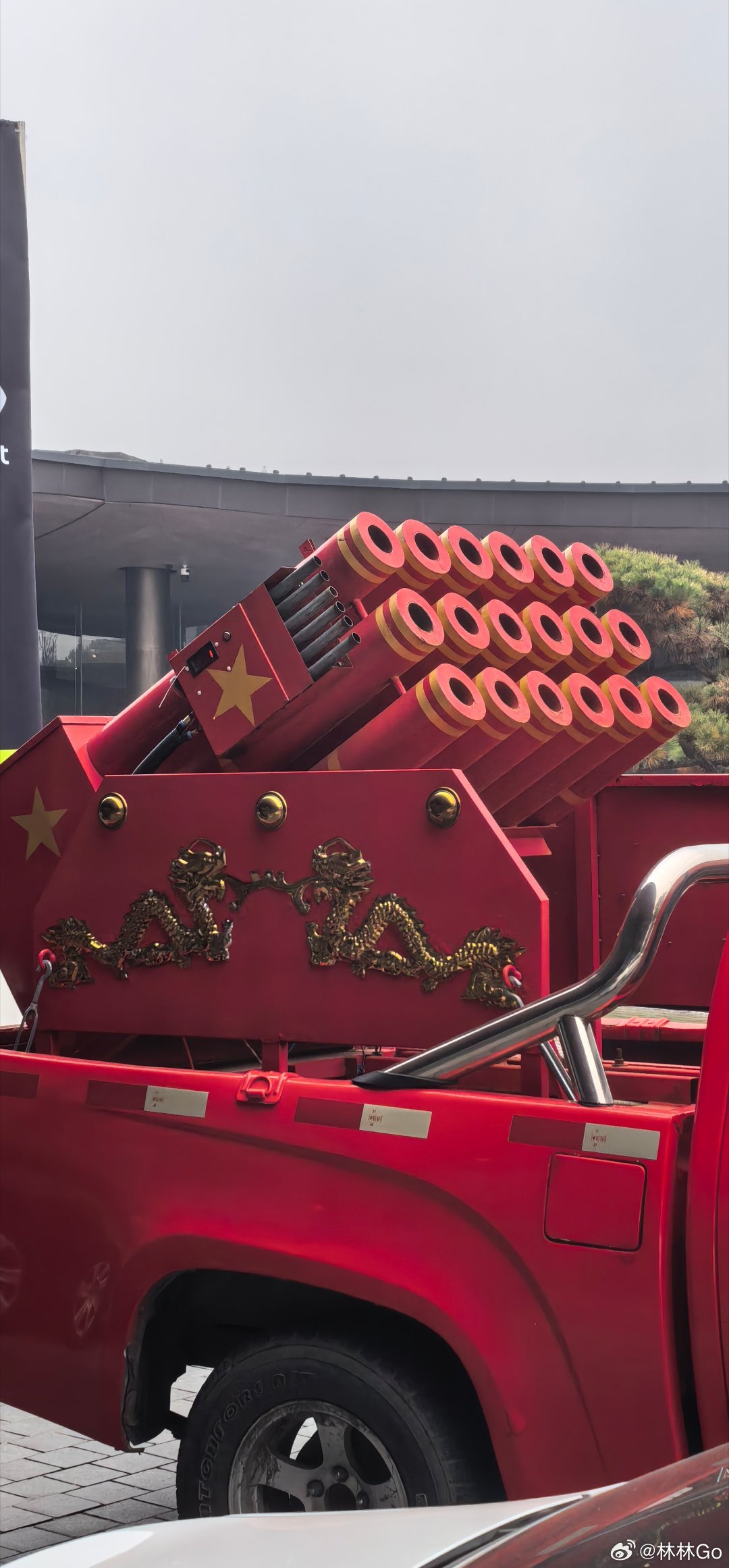 遇到结婚的车队,这个手搓的礼花发射车太帅了。声光雾都是电子的,符合环保标准。喜庆