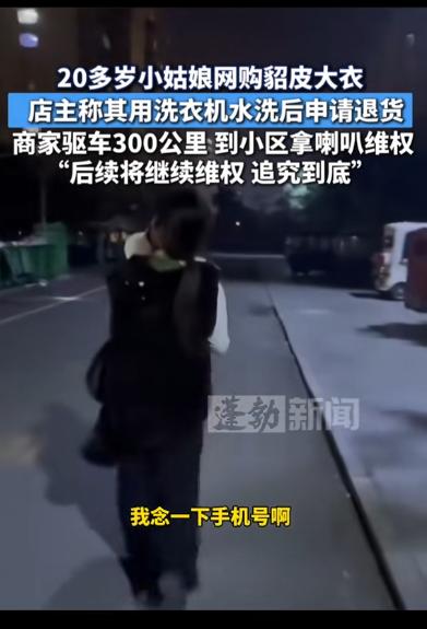 “专治白嫖党!”山东济宁,二十多岁小姑娘网购貂皮大衣,用水洗后恶意退货还死不承认!老板忍无可忍,驱车300多公里杀到对方小区楼下,手持扩音喇叭开启“人肉搜索”模式!”网友:这样的人真的很恶心,你穿了的衣服退回去卖给谁?   事情的起因还要从一名二十多岁的小姑娘在网上购买了一件貂皮大衣说起。   那时候这名小姑娘担心商家给她发的货会货不对版,于是就让商家发货前特意给她拍了视频,清晰记录了衣服的成色、标签和包装情况,一切完好无损。   过了几天之后小姑娘收到货之后就签收了,但没过多久就申请了退货,理由是“衣服有异味、不像真的貂皮”。   商家起初还客气地沟通,打算让她寄回检查,不料货一到手,商家打开包裹,顿时傻眼,原本柔顺油亮的貂皮,变得毛糙打结,颜色发灰,皮板也被泡得僵硬发硬,明显是被水洗过的痕迹。   商家立刻联系小姑娘质问,不料小姑娘却一口咬定没有水洗,而且还坚称要全额退款,商家拿出发货前的视频为证,对方仍强词夺理。   面对这样的情况,商家实在是忍无可忍了,于是就直接开车来到了这名小姑娘收货地址的小区,到那之后她按下开关,将所有事情说了一遍之后还爆出了这名小姑娘的手机号,开始找人。   不一会儿,周围的住户从窗口、阳台和楼下小道上聚拢,低声议论、指指点点。有人拿起手机录视频,有人皱眉不满,有人则侧身远离,不愿卷入纷争。   事后这段视频被传到了短视频平台上面之后,一些网友看到了之后在下面评论说,现在在电商平台上面很多都是七天无理由售后,所以很多年轻爱美的小姑娘就是利用这一权利,买回来穿,拍完照之后在退,希望监管部门严格监察。   此外还有一些网友在下面评论说,做人要有诚信与道德,自己穿过的衣服而且还洗坏了之后还得商家寄回去,这种做法实在是太恶心人了,所以找到这名小姑娘这之后应该严厉惩罚。   不管怎样,这样的“白嫖”行为看似占了小便宜,实则丢了人格与信誉,买卖之间,最值钱的不是商品,而是诚信。   通过这还能事情也希望每个人都能明白,退的不只是货,更可能是自己的良心,做生意不易,请别让贪念,毁了彼此的信任。   对此,你还有什么看法呢?    (信息来源 :南昌晚报 )