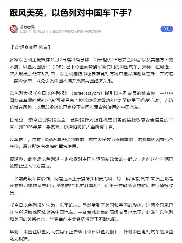 人善有人欺,马瘦有人骑。 以色列为什么在对联合国五常中,专选中国攻击? 只有一点可以证明:在许多国家对以色列进行制裁中,中国选择了中庸之道,没有对以色列釆取强硬手段,打击以色列。 美国那是以色列的铁杆靠山,每年军援哗哗地给,联合国安理会上否决权当护身符用,以色列再横也不敢对金主龇牙。 英国和法国嘛,嘴上偶尔骂两句“违反人道”,军售合作却没断过,雷声大雨点小,以色列也就敷衍两句了事。 俄罗斯倒是跟中国立场近,可人家深陷乌克兰泥潭,中东事务插不上手,以色列自然绕道走。 这么一圈比下来,就中国成了“特殊目标”:既拥有安理会一票否决权的分量,又坚持“不选边站”的平衡术。 2022年中以贸易额还高达254亿美元呢,中国连续五年是以色列最大进口来源国,2024年进口额135.3亿美元,汽车、家电全指望着中国供应链。 可内塔尼亚胡政府偏觉得这种“中庸”是软柿子——你瞧,他不敢制裁我嘛!以色列这波操作,背后藏着三重算计。 头一重是转移国内矛盾。 内塔尼亚胡自个儿家里早乱成一锅粥了:贪腐案庭审拖了62个月,借口“急性肠炎”推迟开庭;特拉维夫大学民调显示支持率跌到20%;年轻人被派去加沙送死,老百姓为奶粉涨价骂街,反战游行标语直接写“内塔尼亚胡下台”。 国际上更惨,英国、法国、加拿大等十多个西方国家陆续承认巴勒斯坦国,欧盟启动对以贸易优惠审查,426亿欧元的欧以贸易额中37%可能泡汤。 这种时候,把中国拉出来当“靶子”,简直是一箭双雕:既能煽动国内民族主义情绪,又能假装“外部敌人”逼宫,让民众忘了经济烂摊子。 第二重算盘是讨好美国爸爸。 美国两党斗得再凶,“反华”却是共识。 内塔尼亚胡深谙此道,2025年9月面对250名美国议员代表团时,直接点名中国“搞信息围堵”,还放话“用自己方式对付中国”。 这戏码明摆着表忠心:您瞧,我跟您一块儿怼中国!甚至纵容议员窜访台湾,在南海问题上恶心中国,都是想换美国更多军援。 但尴尬的是,美国护得了短却护不住口碑——联合国142国赞成的巴以决议,美国硬是动用否决权,结果高校抗议席卷全美,连哥伦比亚都跟以色列断交了。 第三重是试探中国底线。 以色列觉得中国“不强硬”,就想试试能不能逼中国在巴以问题上倾斜。 比如2023年10月,以色列驻联合国大使埃尔丹直接呛声“中国不骂哈马斯就是偏袒”;2025年又抱怨中国通过AI和社交媒体“煽动反以情绪”。 更离谱的是,以色列厂商一边依赖中国零部件进口,一边抱怨中国加强两用产品出口审查是“变相制裁”——其实中国只是依法执行手续,防着零件被用于加沙战事。 这种又怂又横的态度,活脱脱像极了“马瘦被人骑”:你中庸,他就觉得能骑你头上撒野。 但以色列打错了算盘。 中国的中庸不是软弱,而是基于国际法的理性选择。 从斡旋沙特伊朗和解到推动巴勒斯坦各派签《北京宣言》,中国在中东的影响力靠的是建桥铺路,不是拆庙砸锅。 内塔尼亚胡的“碰瓷”反而让阿拉伯国家更靠拢中国——沙特、伊朗加速合作,多哈峰会直接讨论暂停以色列联合国成员资格。 甚至以色列自家经济先撑不住了:2025年一季度GDP增速1.2%创五年新低,对华出口下滑28%,要是真惹毛中国,通胀率怕要从8.7%飙上天。 说到底,以色列专攻中国,就像揪着老实人欺负。 可它忘了,中国这“马”只是不随便尥蹶子,真要踢一脚,能把人踹出内伤。 现在中东50多国酝酿断交,联合国吵着追责,内塔尼亚胡还忙着甩锅中国,怕是离“摔得粉身碎骨”不远了。