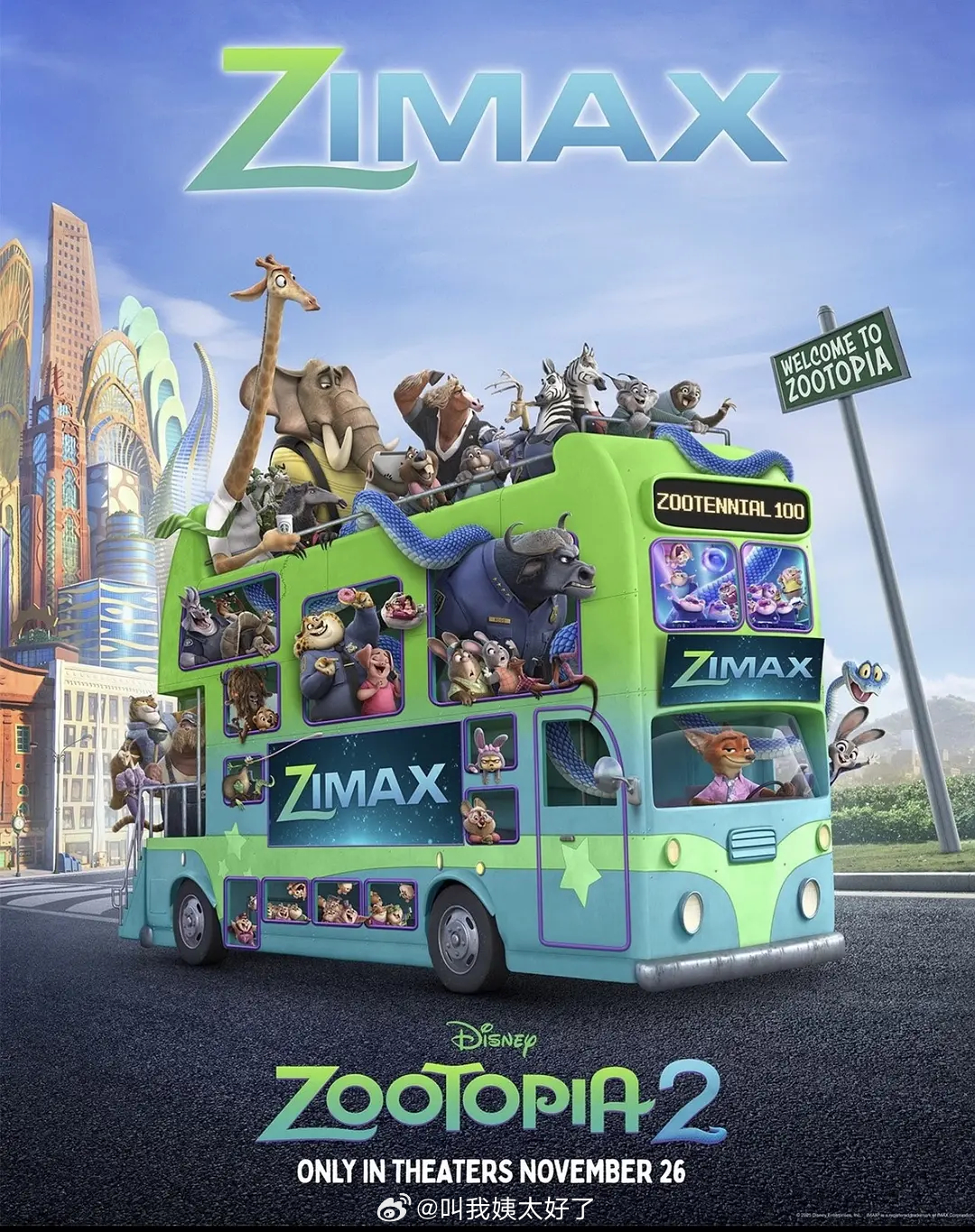 《疯狂动物城2》的海报中外对比,原来外国海报上没有真人,都是动物。内娱这个海报…