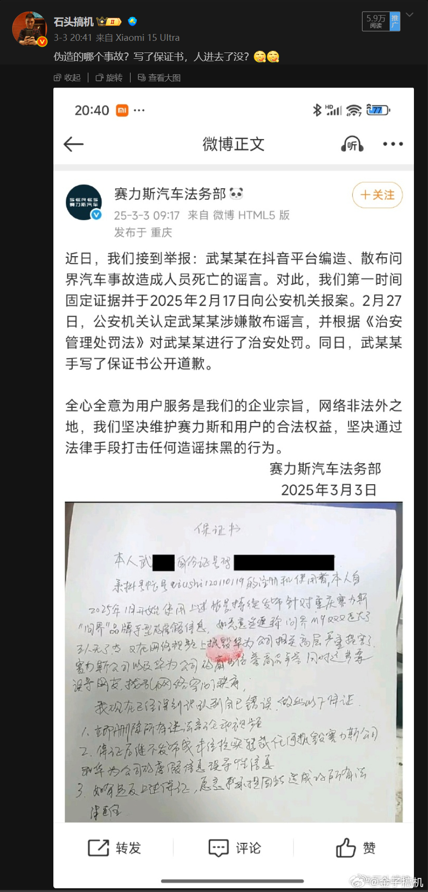 两条微博仔仔细细的看了下,个人认为并没有什么涉及企业违规的内容,一个复述当时比较火的话,另一个是转发企业法务通告打击谣言的。所以,谁帮忙看看这俩有啥问题?[费解][费解]