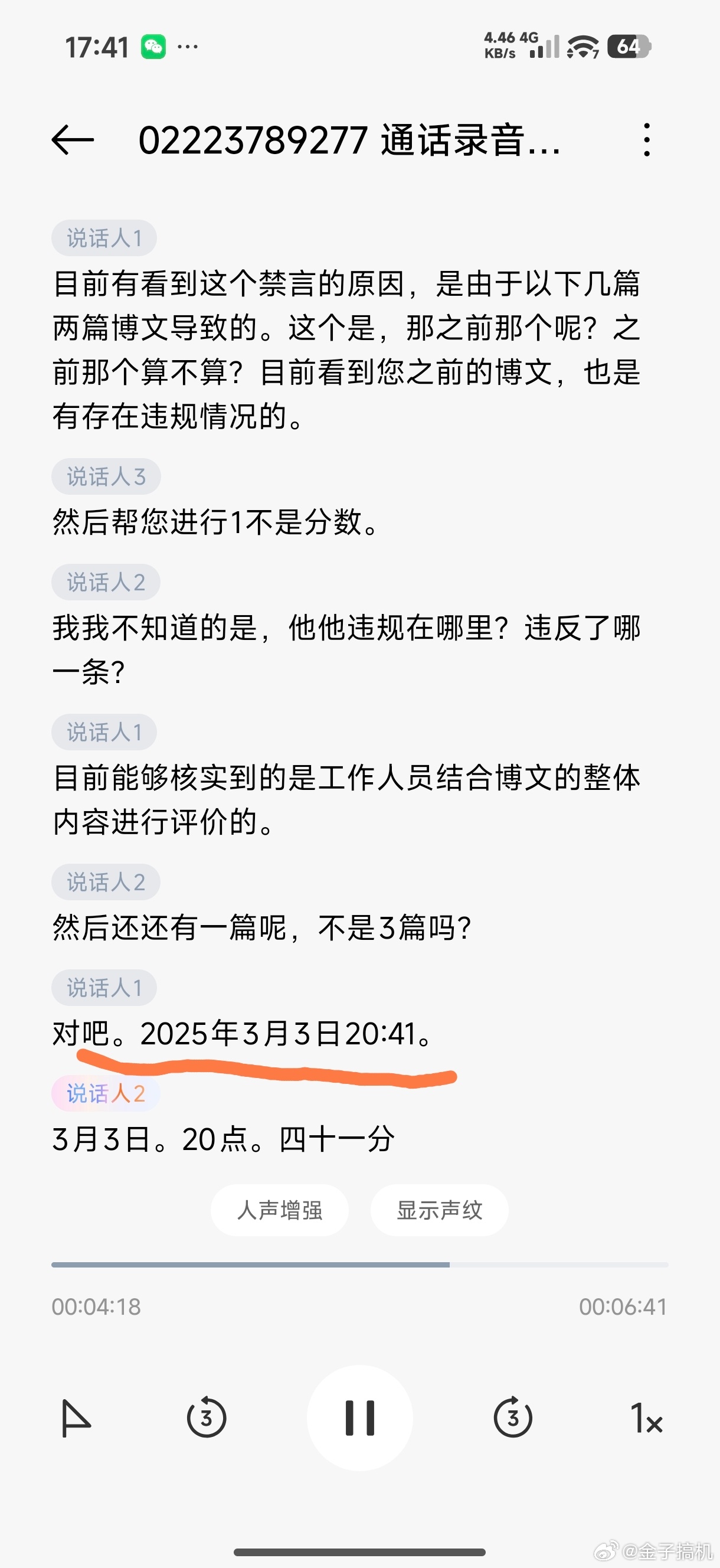 给大家汇报下我被禁言90天的最新进展,刚刚客服又主动打来电话,告知了两条涉及违规的内容,已全程录音!分别是: