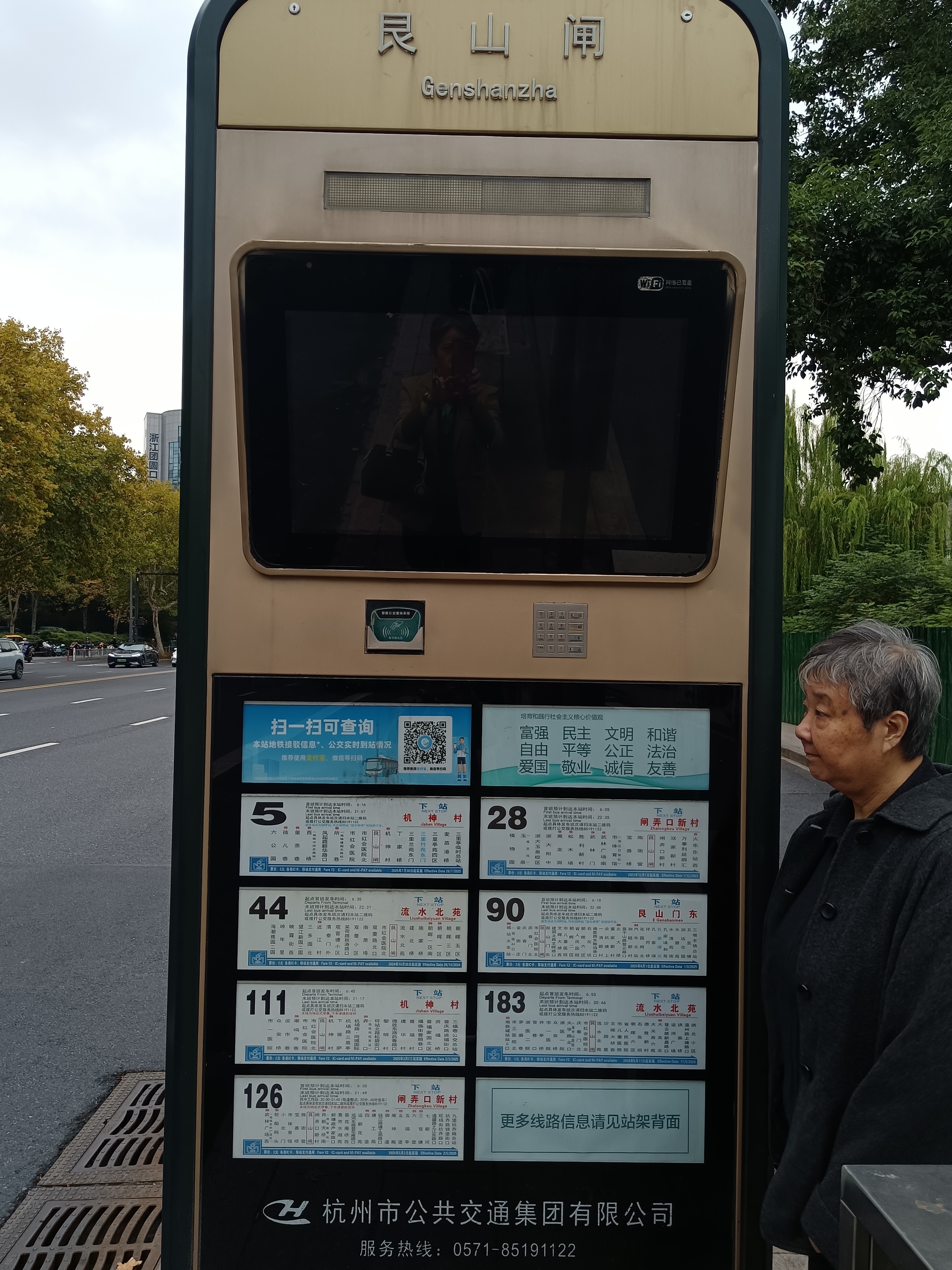 艮山闸的公交站显示屏