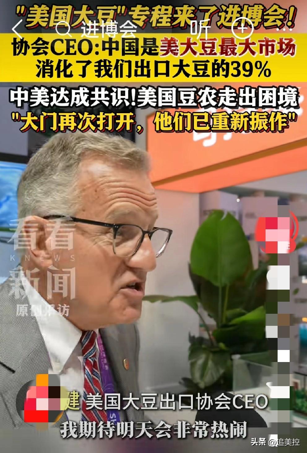 美国大豆直接来到上海国际进口博览会,美国大豆出口协会的CEO亲自带队组团来的。看来只要市场稳定,别说大战三百回合的事儿了,奔前程要紧,找出路要紧,生存下去要紧。也看到了各路欧美日韩大牌子纷纷涌进博览会,想让中国买买买。南国广州的“广交会”是卖卖卖,很红火,说明什么?中国经济发展的韧性高,市场大,开放力度大,政策稳定,有定力,能吸引投资者,也能吸引各路人马开拓市场,抢占市场。这不就是贸易吗?高质量发展就是要人民满意,物品丰富,应有尽有,仓廪实而知礼节,那就是幸福平安生活。