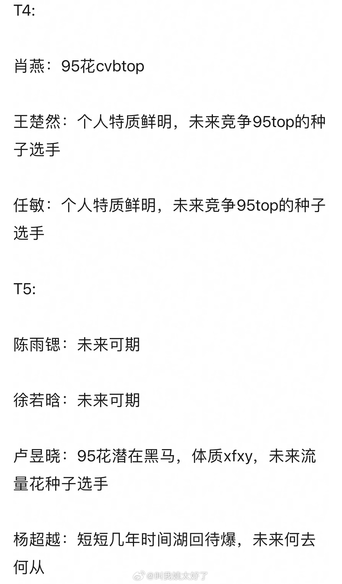 T5:陈雨锶、徐若晗、卢昱晓、杨超越