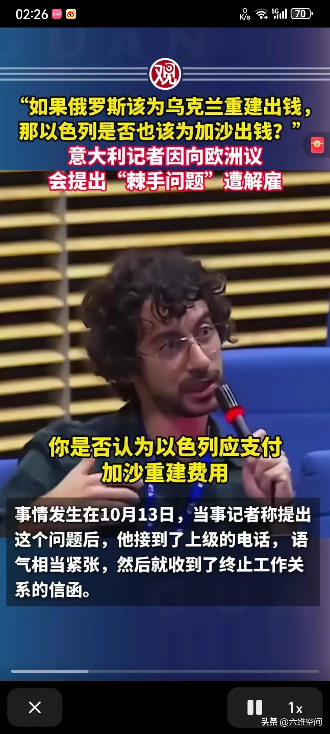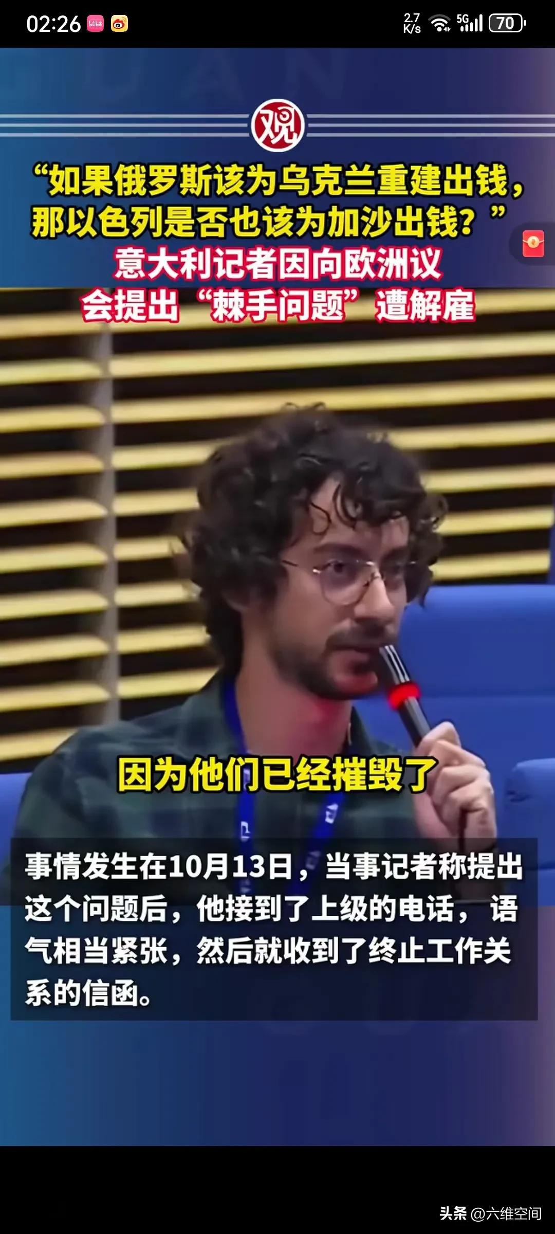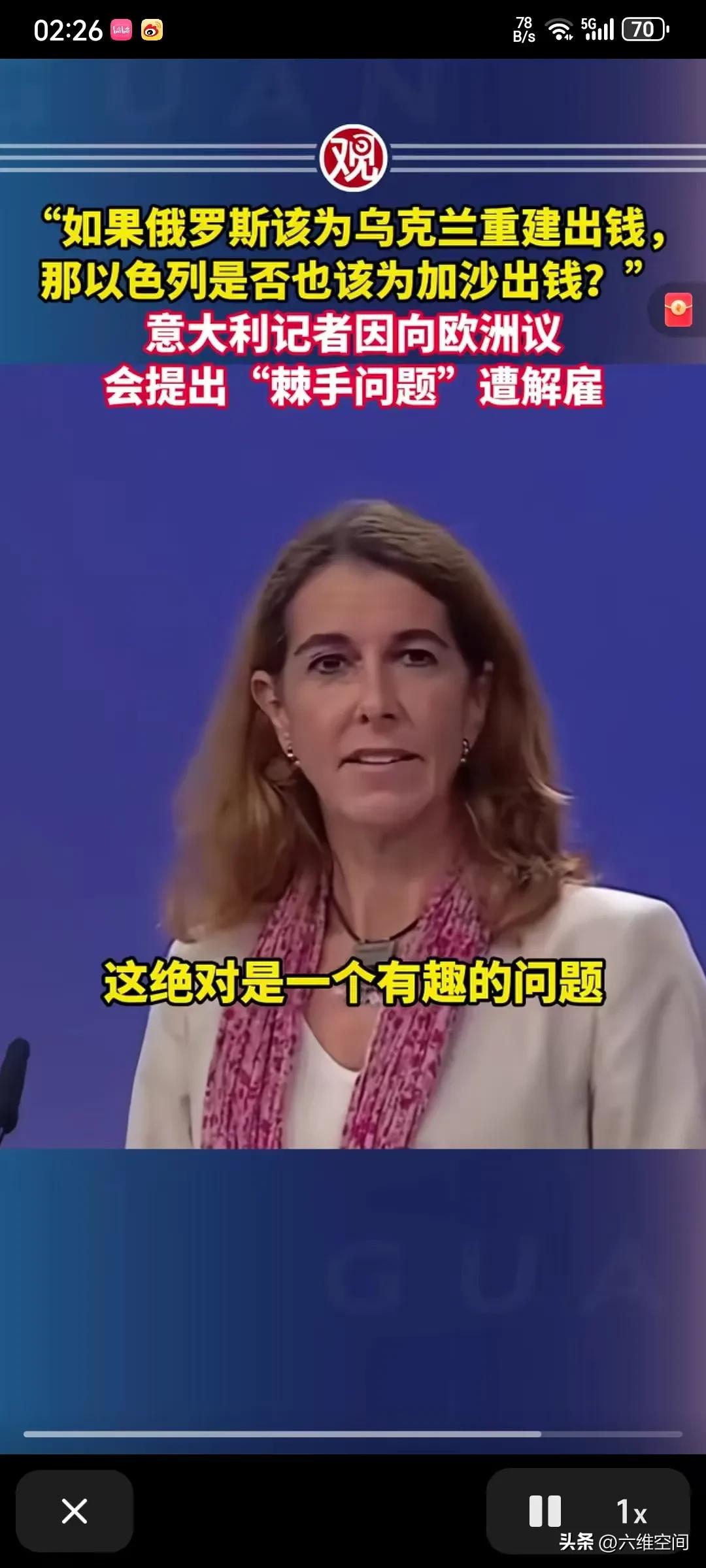 记者问以色列是否应出钱为加沙重建,就被开除了!意大利记者问欧洲议会说如果俄罗斯应该出乌克兰重建的费用,那以色列是否应该支付加沙重建的费用,把发言人给问懵了好几秒,不知道怎么回答,然后说这是一个有趣的问题,但她不予置评!更炸裂的是,过几天后这个问问题的意大利记者就被公司解雇了,人家只是问了一个有趣的问题而已,结果触动了欧洲政客的虚伪,就被解雇了,肯定是以色列或者欧洲的政客去施压报社了,甚至可能以色列都不用施压,就是欧洲政客自己当心会得罪以色列,所以施压报社把记者开除了,那更说明这个记者问对了,这些欧美政客在俄乌冲突上支持乌克兰,说俄罗斯是侵略,然后巴以问题上,却支持以色列,这不是左右脑互博吗,自己打脸自己吗,欧美所谓的价值观太虚伪了!