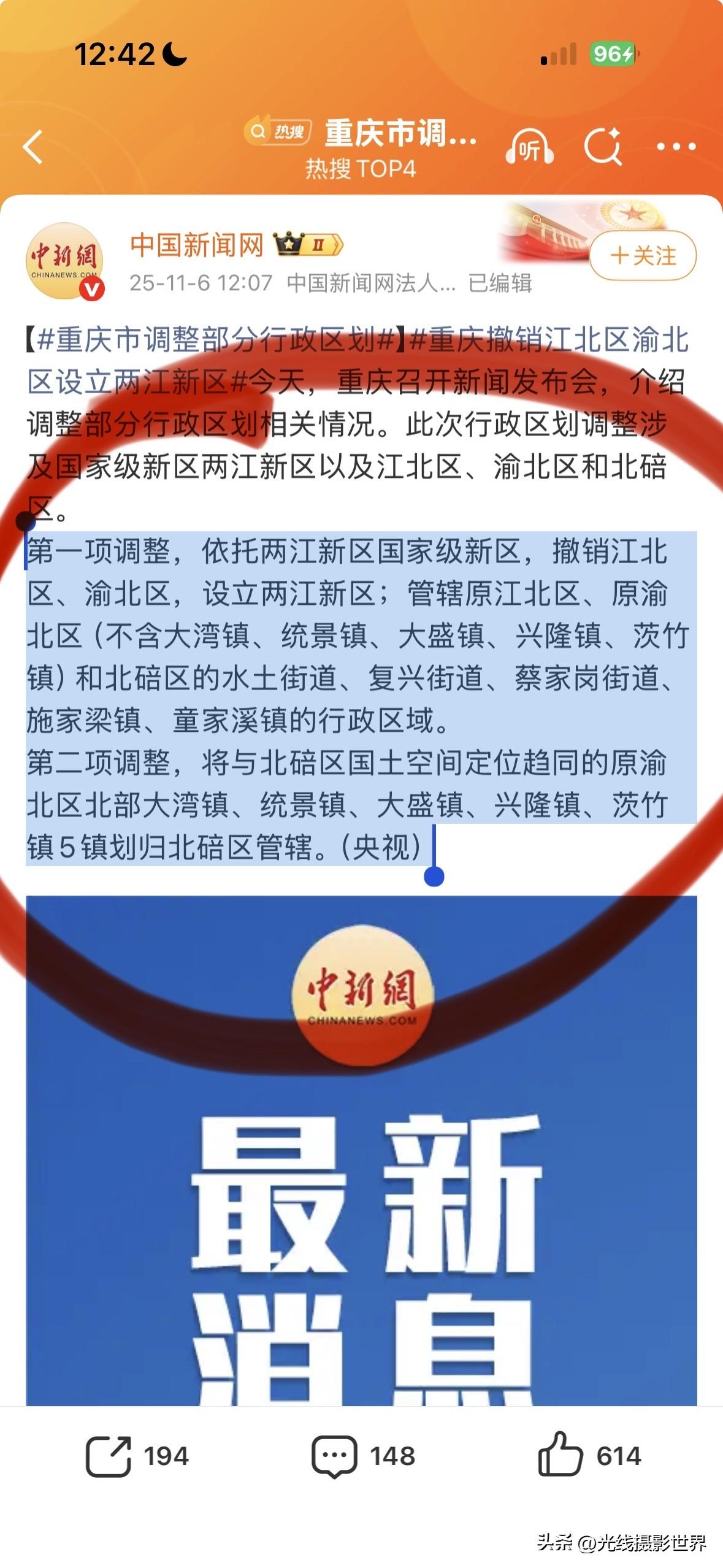 重庆蔡家,彻底沸腾啦!11月6日,全新的重庆两江新区正式亮相,江北区成为历史!渝北区成为历史! 蔡家,彻底沸腾啦! 水土街道、复兴街道、蔡家岗街道、施家梁镇、童家溪镇……烹牛宰羊,唱歌跳舞吧! 中国西部第一区,令人羡慕嫉妒恨! 蔡家,终于变凤凰啦! 今天是个好日子! 蔡家的小伙伴们,高兴昏啦! 全新的两江新区,将会坐着火箭高速前进! 祝贺蔡家! 祝贺中央公园! 祝贺水土! 祝贺童家溪! 今天晚上,北碚区的招牌菜,三溪口豆腐鱼,恐怕是一位难求!彻夜狂欢!