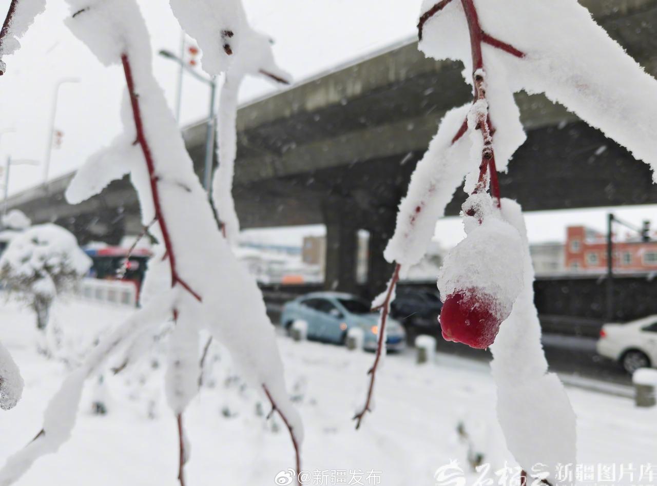 今晨,松软的雪花聚枝头,每一片雪花都送来了入冬的祝福,一夜过去,降雪所触之地,皆