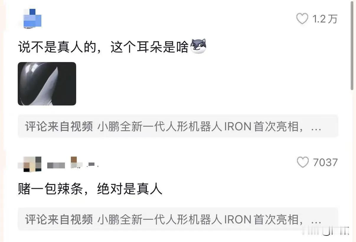 “太像人”,网友怀疑“小鹏机器人里面藏了真人?” 2025年11月5日,在小鹏科技日活动上,小鹏发布的新一代IRON人形机器人因外形和步态过于逼真,遭到网友质疑是真人扮演 。 有网友称放大看能看到耳朵轮廓,臀部似乎有肌肉在动,还有人觉得机器人走路太丝滑,不像当前技术能达到的水平。针对这些质疑,11月6日上午,小鹏汽车CEO何小鹏发布了一条“一镜到底”的视频进行澄清 。视频中,工作人员拉开了机器人的衣服拉链,展示了内部的3D打印支撑骨架、晶格状仿生肌肉和银色控制器。何小鹏还介绍,机器人头部像耳朵的地方其实是两组麦克风阵列,肩膀位置有运输固定器,并且在机器人走路时能明显听到电机旋转和散热的声音,以此证明IRON机器人内部没有真人。
