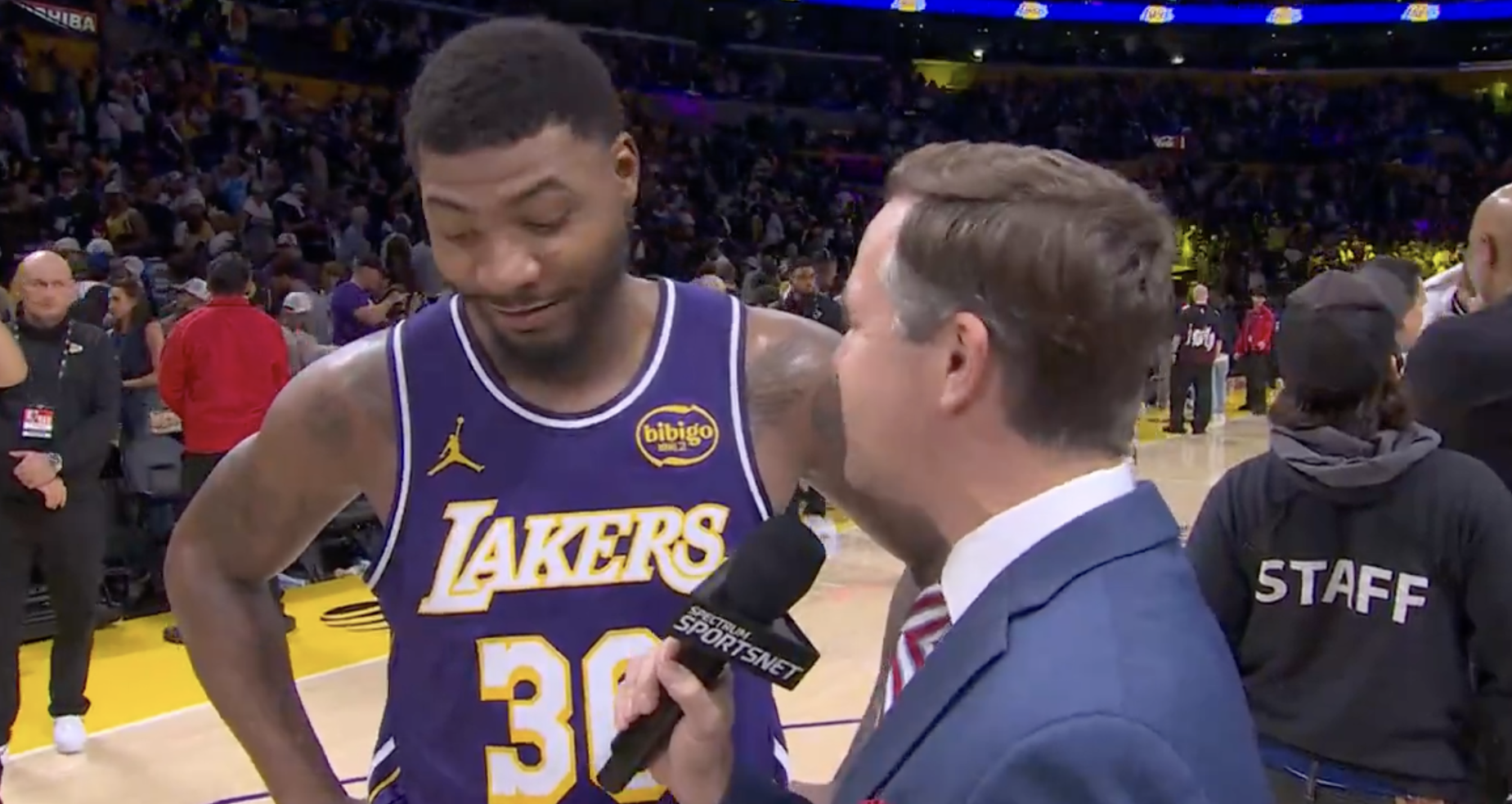 赛后湖人球员马库斯-斯马特在接受记者采访时谈到了本次胜利,斯马特表示:“整场比赛我们都很有韧性……我们保持了连胜势头,最终取得了胜利。”