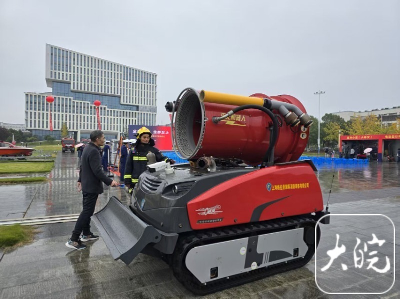 在队伍装备展示区,大皖新闻记者看到多种消防救援器材和车辆,消防员耐心讲解装备的性能和用途,满足了大家的好奇心。一个灭火机器人引起了不少市民关注,现场消防员介绍,这款灭火机器人适用于比较危险的大型火场,在人员难以进入的情况下,可以通过遥控器控制这款灭火机器人进入火场,它具有灭火、排烟、清障、实时监控、检测危险气体等功能。