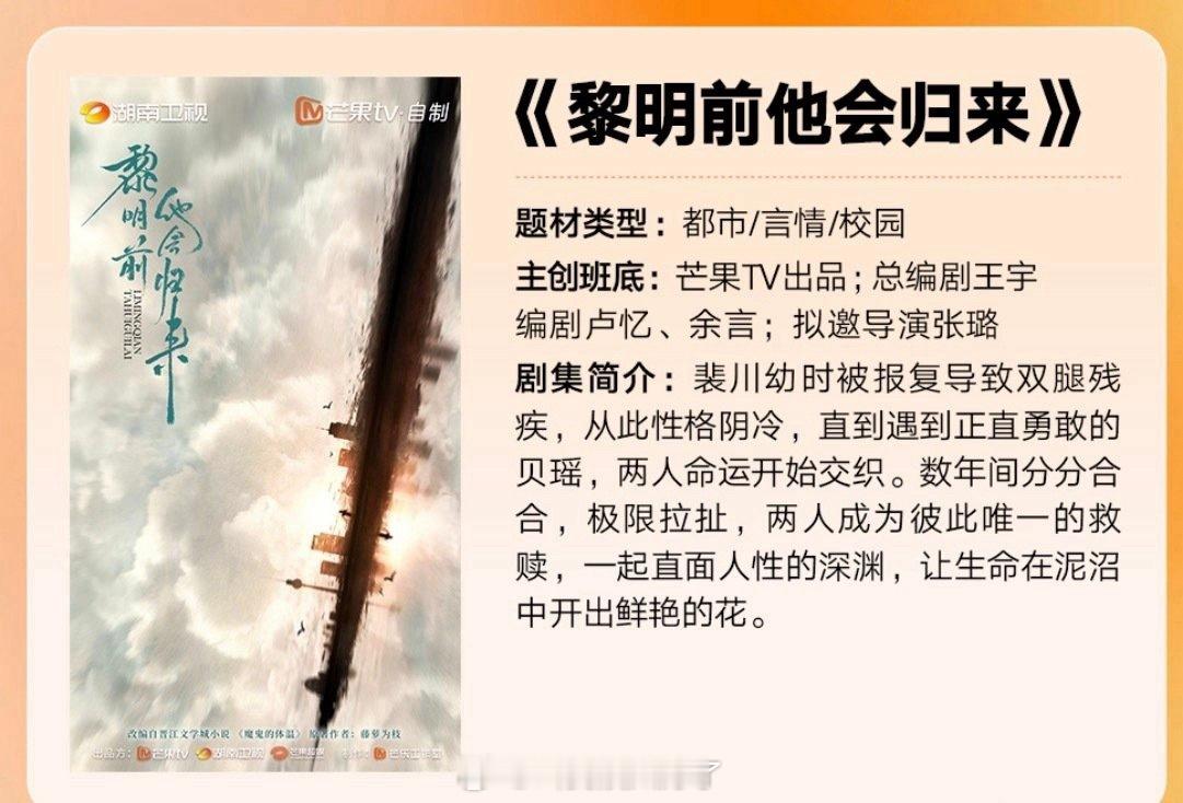 藤萝为枝《魔鬼的体温》影视化了《黎明前他会归来》,主演是毕雯珺和张淼怡。毕雯珺现在是🥭得御用男主了?