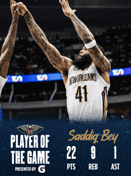 鹈鹕官方更新ins:晒出萨迪克-贝的数据海报并感谢他的贡献