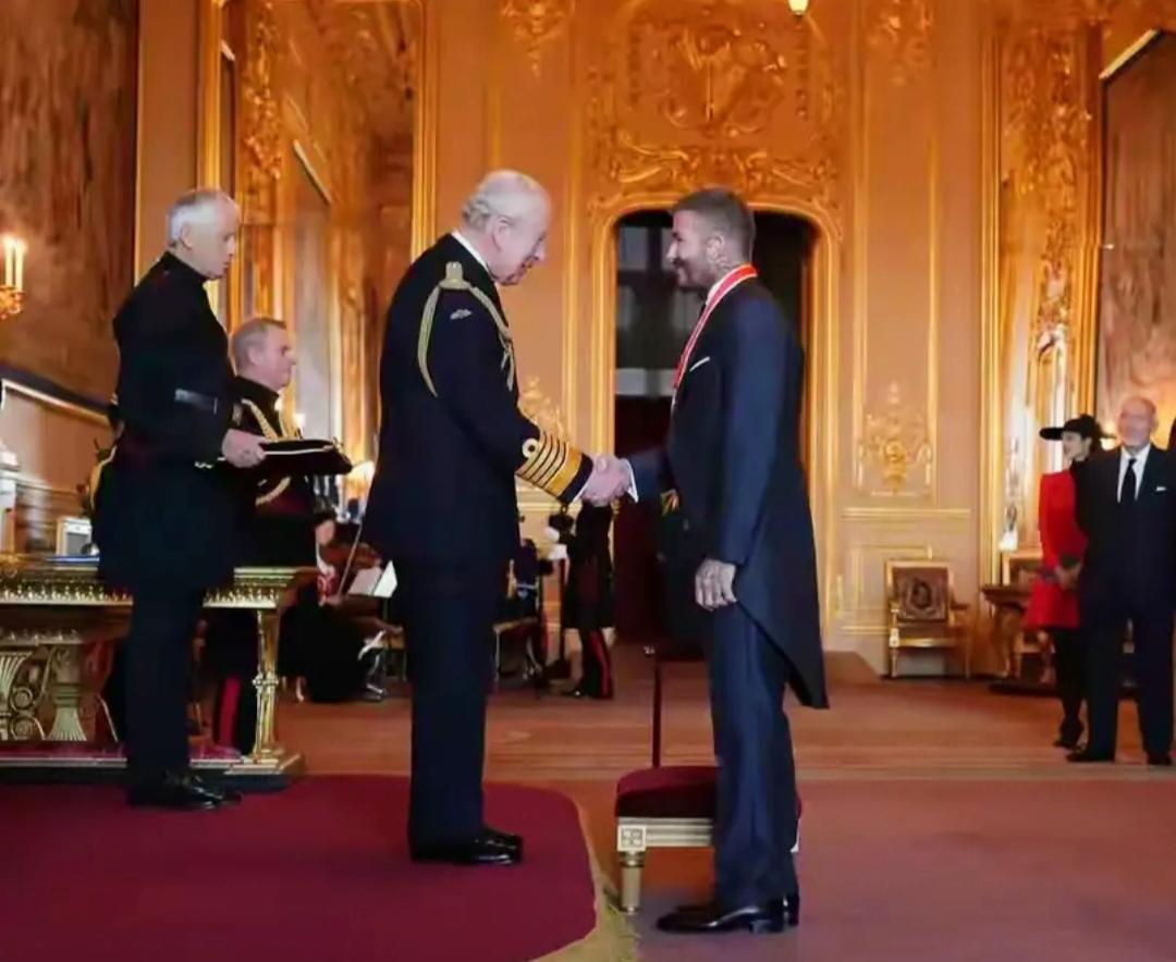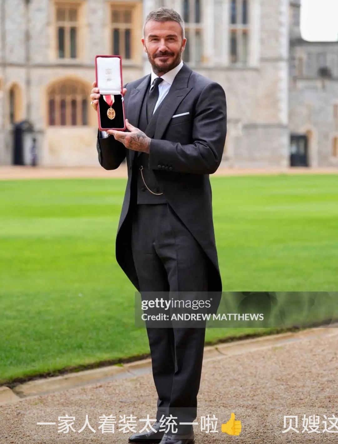 贝克汉姆获封爵士,这可是大新闻!当地时间11月4日,50岁的他在温莎城堡单膝下跪,接受英王查尔斯三世授勋。贝克汉姆对这头衔执念已久,还曾在邮件里“泄私愤”。 他为英格兰队出场115次,效力过曼联、皇马等俱乐部,在体育、时尚和商业领域都是代表人物。早年他波折不断,98年世界杯红牌让他成“英格兰罪人”,年轻时奇异打扮也被小报报道。不过他持续投身慈善、为王室活动站台,最终梦想成真。这不仅是个人荣誉,也是时代与社会认同的兑现,是平民跻身上流的象征。 一家人都来了,脸上只有兴奋二字。