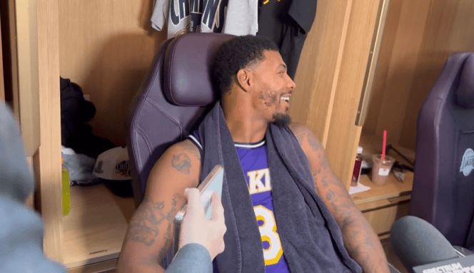 湖人球员马库斯-斯马特全场出战33分钟,10投3中,三分7中1、罚球10中10得到17分5篮板5助攻1抢断1盖帽。