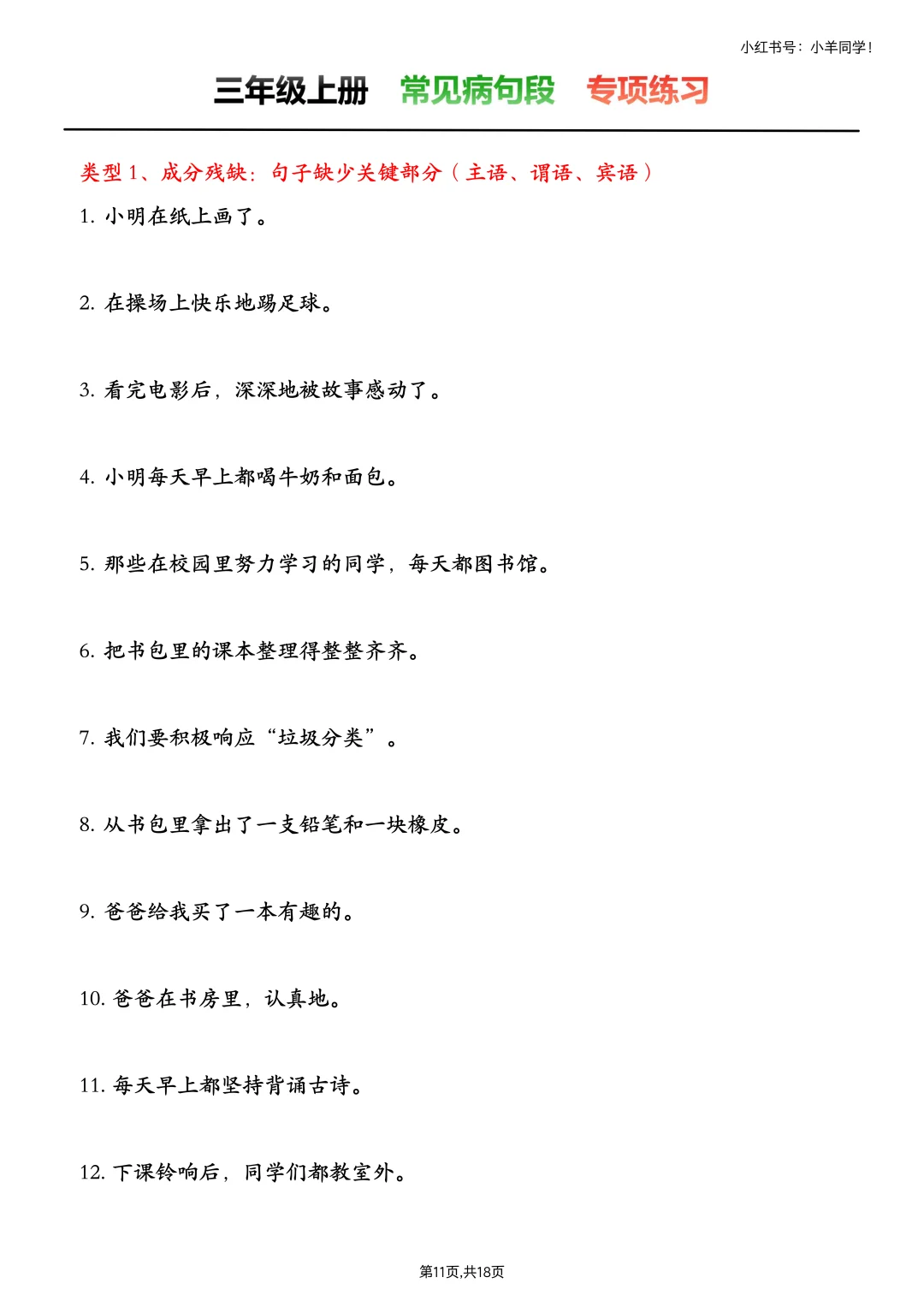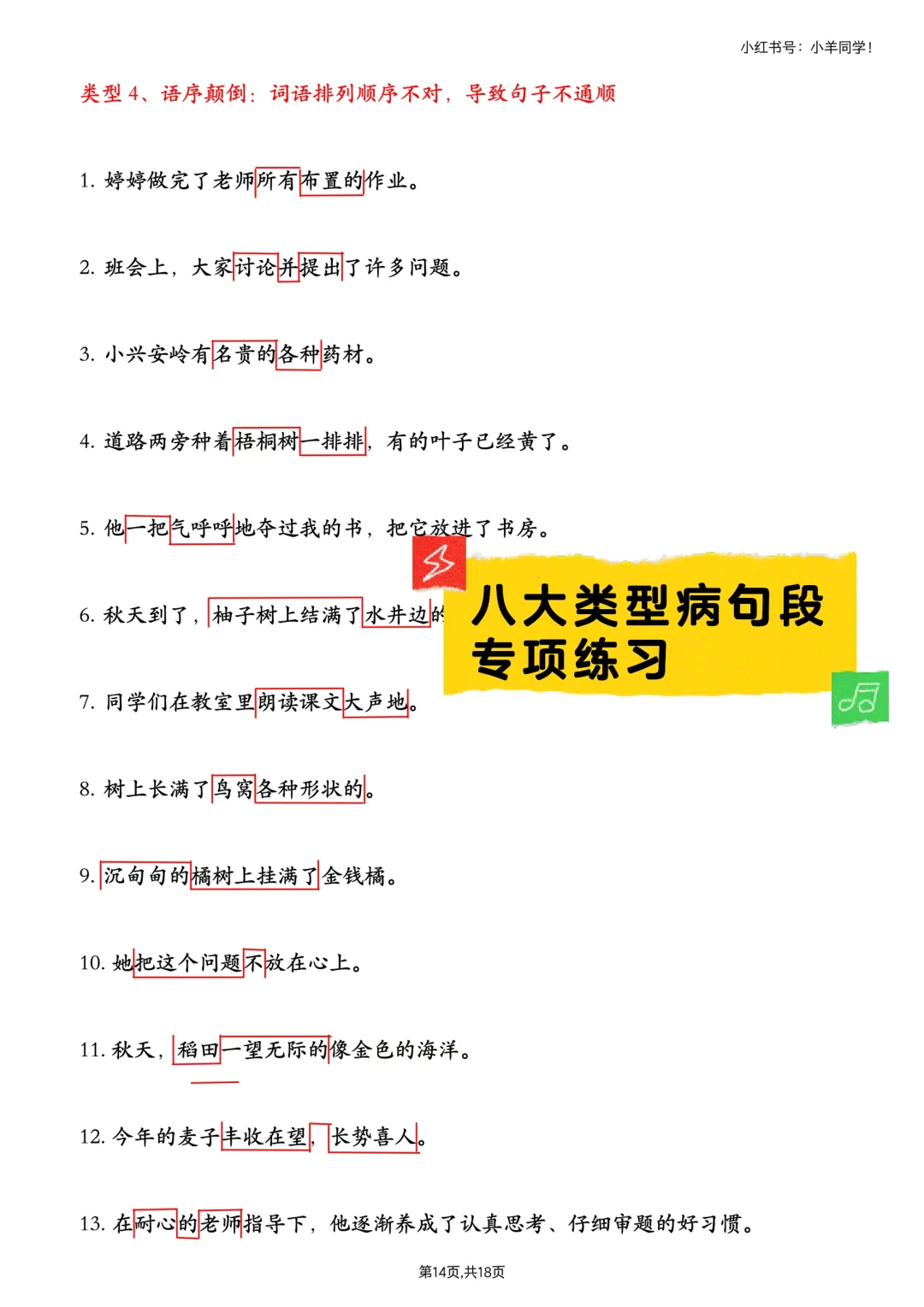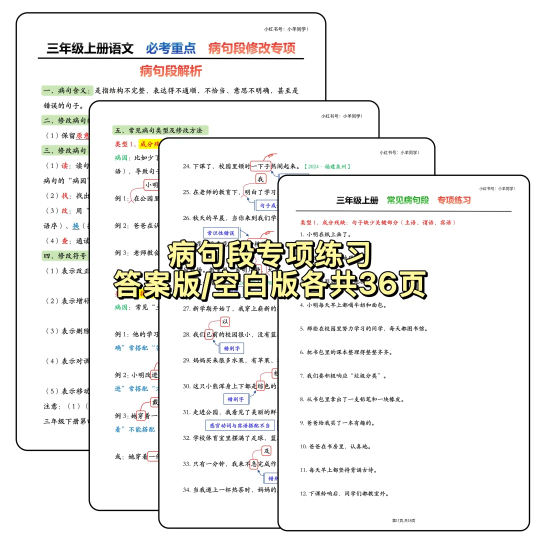 家有三年级娃的宝妈速来!🙋♀️孩子语文病句总扣冤枉分?这份专项资料我直接锁死!🔒