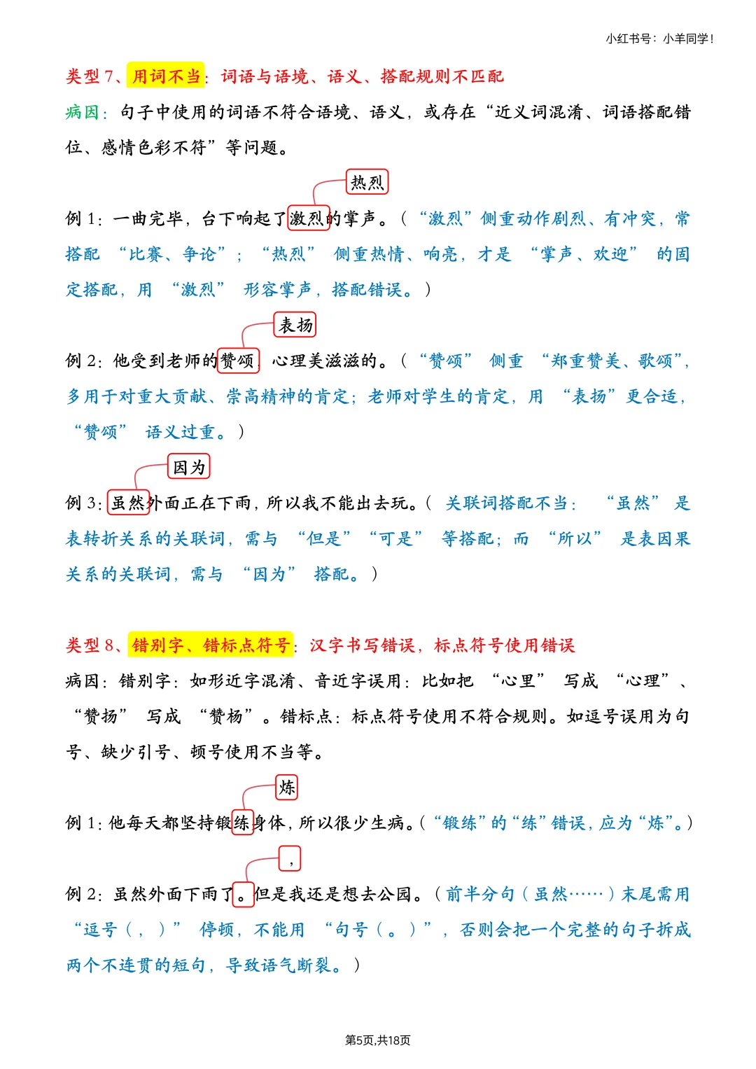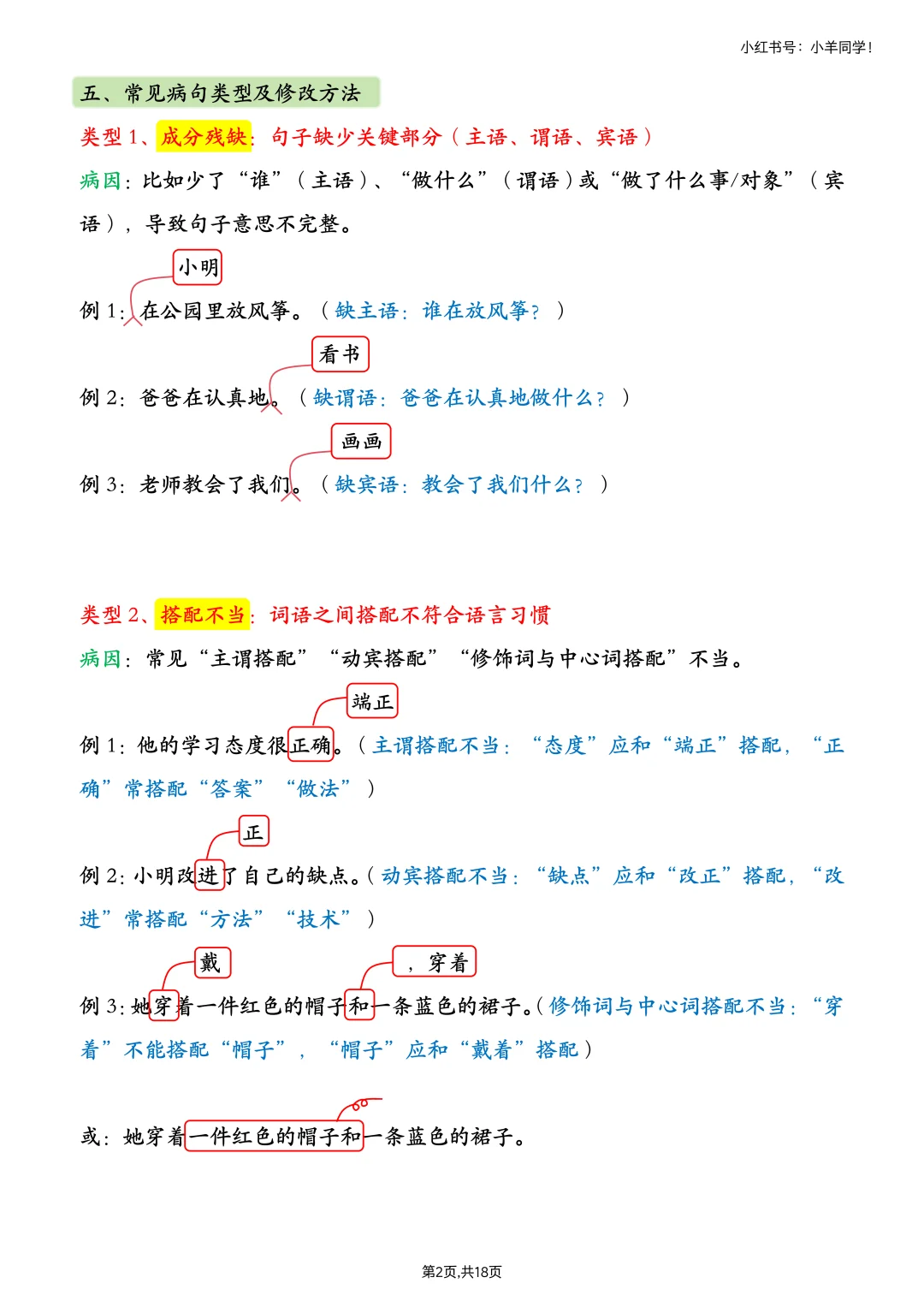 不仅讲清 “成分残缺、搭配不当” 等常见病句类型,还附超详细修改方法, step by step 教孩子改,一看就会!