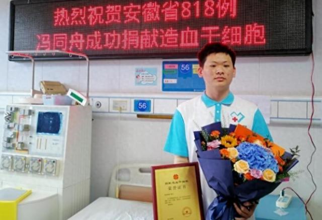 10月26日,在马鞍山市红十字会志愿者的陪伴下,他入院开始做捐献前准备。捐献过程中,注射动员剂带来了一些不适,但冯同舟坦言,“想到这会拯救一个家庭,我觉得十分值得。”
