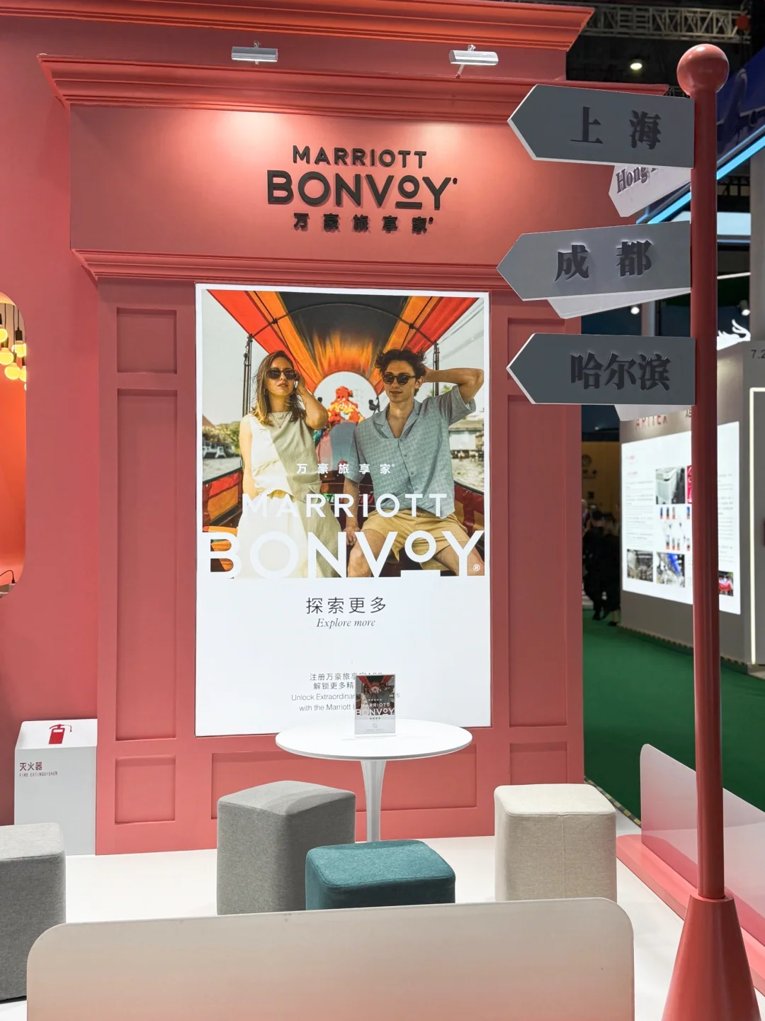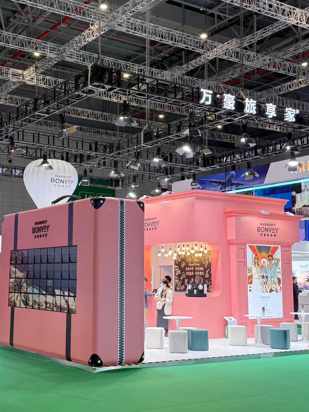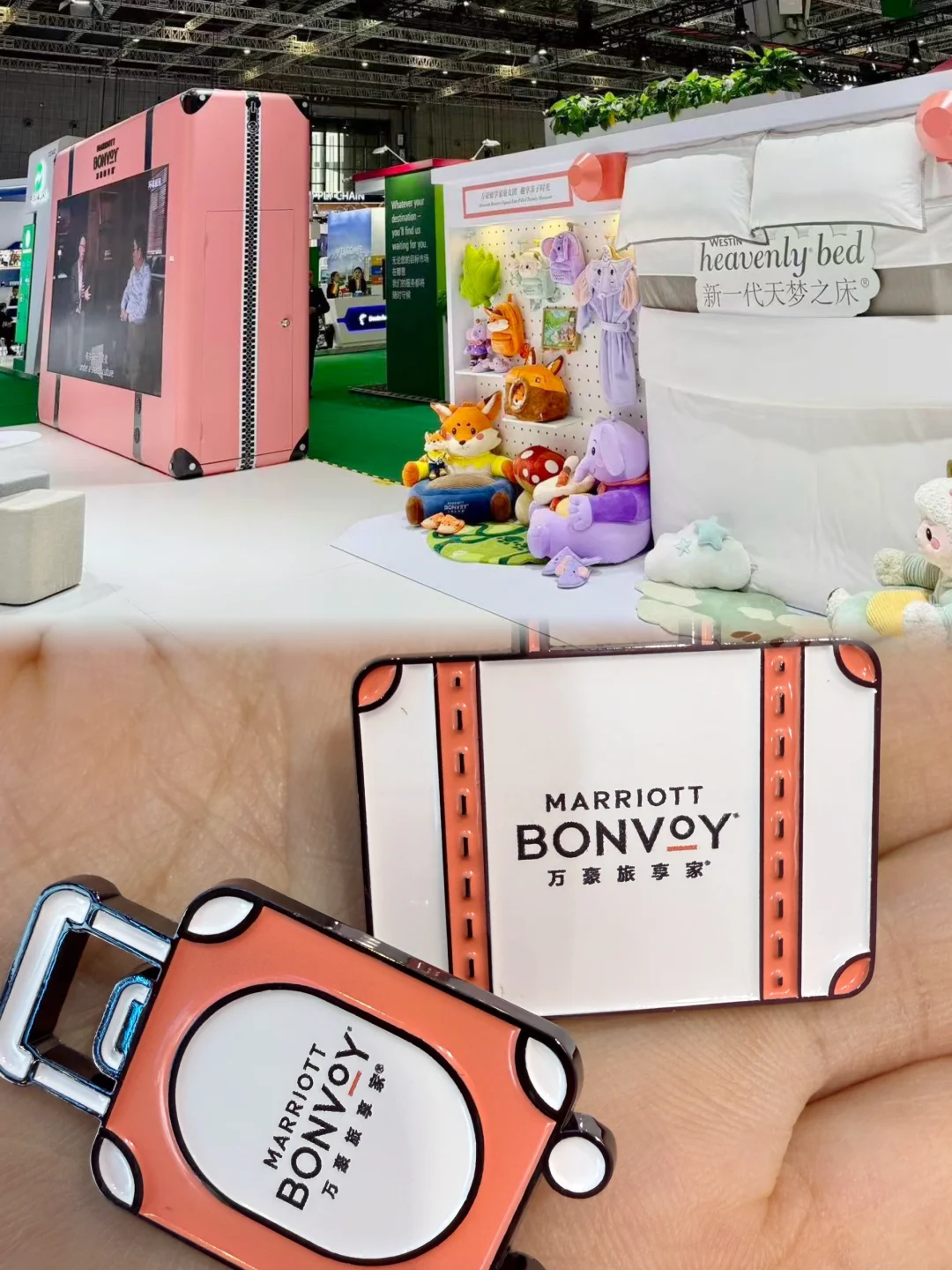 🥰万豪的热气球装置也太会了吧!“万豪旅享家”的 logo 在空中飘着,远远就看到了~ 美丽的粉色行李箱,让人想起愉快的旅行时光,分分钟拍出旅行大片,这品牌氛围感绝绝子! 参加互动探索旅行目的地,还可以get小🎁!