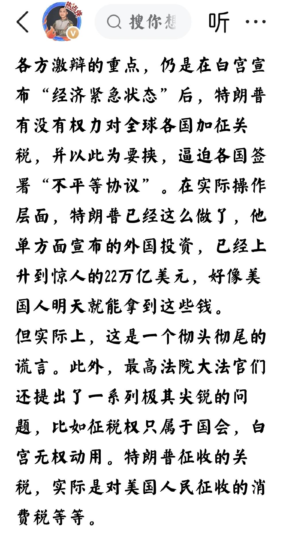 个人预判:美国最高法院今日判决 个人观点:非法,美国最高法院今日判决,美国总统特朗普对世界各国的关税征收 — 违法。