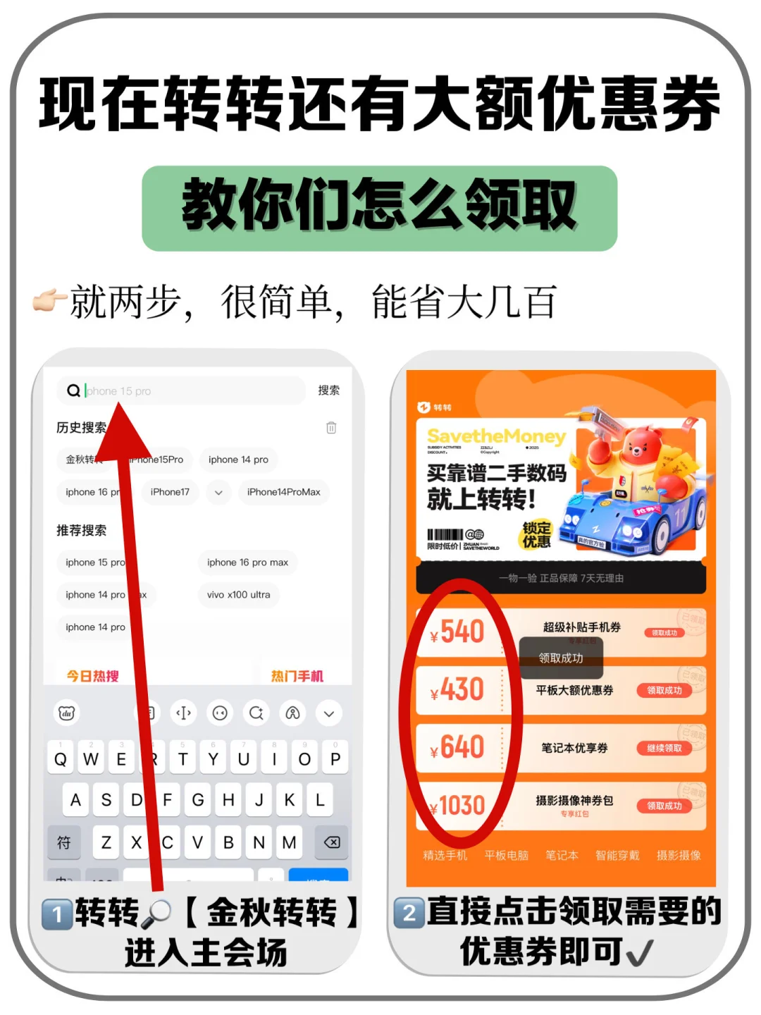 如果是想入手二手iPhone的宝子,记得一定要去转转上面🔎【金秋转转】主会场有大额优惠券,现在买iPhone,直接还能再优惠几百元,性价比简直不要太高