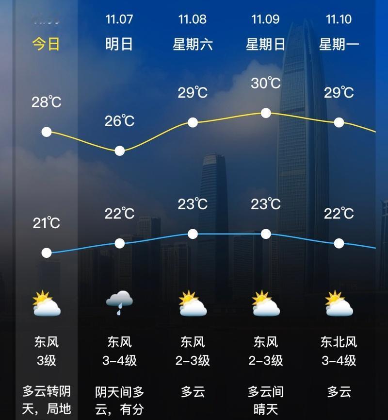 昨天白天,深圳阳光上线,久违的蓝天白云也露面了。 阳光一上线,气温就嗖嗖回升。昨天同一时段,气温比前一天上升6-7℃,气温图直接切换色系。 今天,深圳将切换天气模式,以阴天为主。 【上班天气】 早晨6-9时,深圳晴天间多云,气温21-24℃,东北风2-3级,沿海、高地和海区最大阵风8级左右,相对湿度65%-80%,能见度10-20公里。 【今日天气】 今天深圳多云转阴天,局地有零星小雨,气温21-28℃,东风3级,沿海、高地和海区阵风6-7级,相对湿度55%-90%。 之后几天,深圳也将进入升温通道,整体天气以多云为主。 6-7日,深圳多云到阴天,偶有零星小雨,沿海高地偏东阵风6-7级。 8-9日,深圳多云,气温继续回升。 10日起,受冷空气影响,深圳北风加大,云量增多,气温下降,早晚体感清凉。 台风“海鸥”已进入24小时警戒线 今年第25号台风“海鸥”在登陆菲律宾后,昨天上午已经进入南海并跨过了24小时警戒线,昨天下午已经加强为强台风级。 未来,“海鸥”将以每小时30公里左右的速度向西偏北方向移动,强度继续加强,最强可达强台风级(45-50米/秒,14-15级),并将于6日夜间在越南中部一带沿海登陆(38-45米/秒,13-14级,台风级或强台风级),之后强度逐渐减弱。 虽然“海鸥”没有直接登陆我国,但仍会对海南岛等地产生风雨影响。 “海鸥”后面还可能有新台风“凤凰”生成! 新台风“凤凰”将在温暖的海洋上蓄力成长为一个体型较大、强度很强的台风,可能达到强台风级别以上,未来不排除进入南海并给我国东南部海域带来风雨影响的可能性。 近期天气变化快,短袖更是时不时出场,乱穿衣的季节,建议小伙伴们洋葱穿衣,谨防感冒。 晶报综合中国天气、深圳天气等