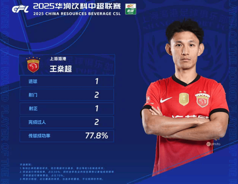 在2025中超联赛第29轮比赛中,上海海港主场迎战浙江队,下半场第50分钟,王燊超在禁区内凌空抽射轰出世界波,帮助球队扩大比分。最终,王燊超打入一记世界波,帮助上海海港3比0战胜对手。