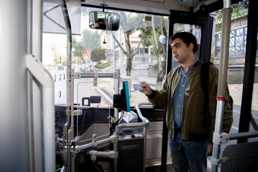 ▲安森用社保卡在智慧书屋借阅图书安森用社保卡乘坐公交车