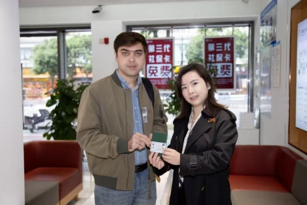 ▲安森在重庆领到自己的社保卡