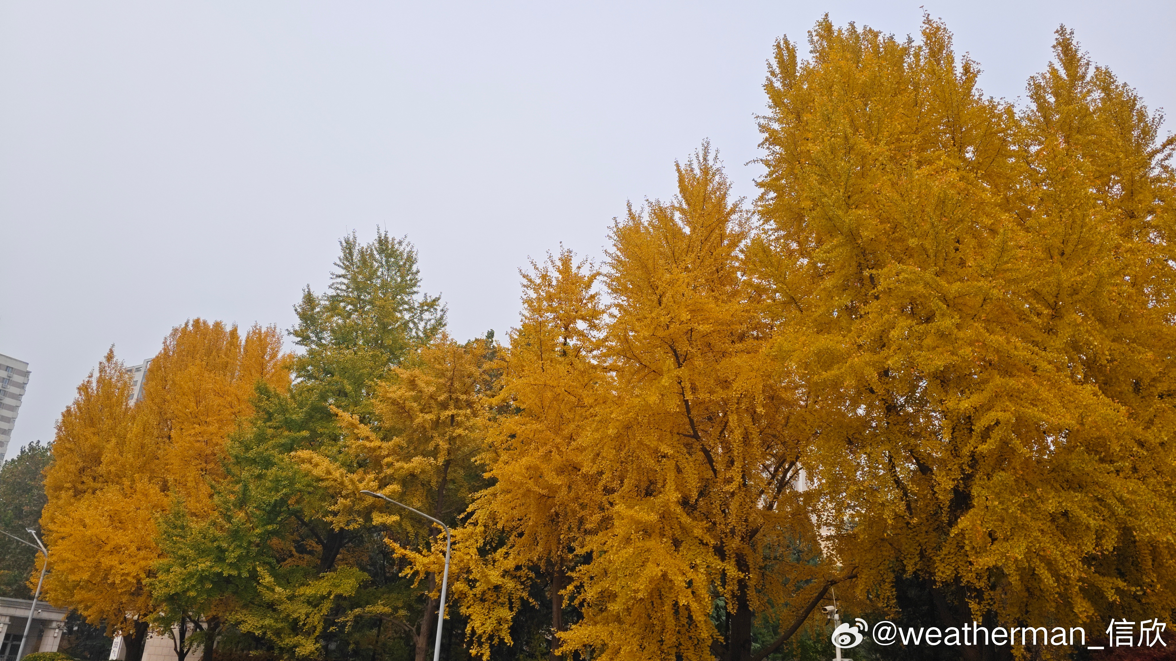 一周的时间,中国气象局里的银杏就明显变黄了。图1为上周四(10月30日),图2为