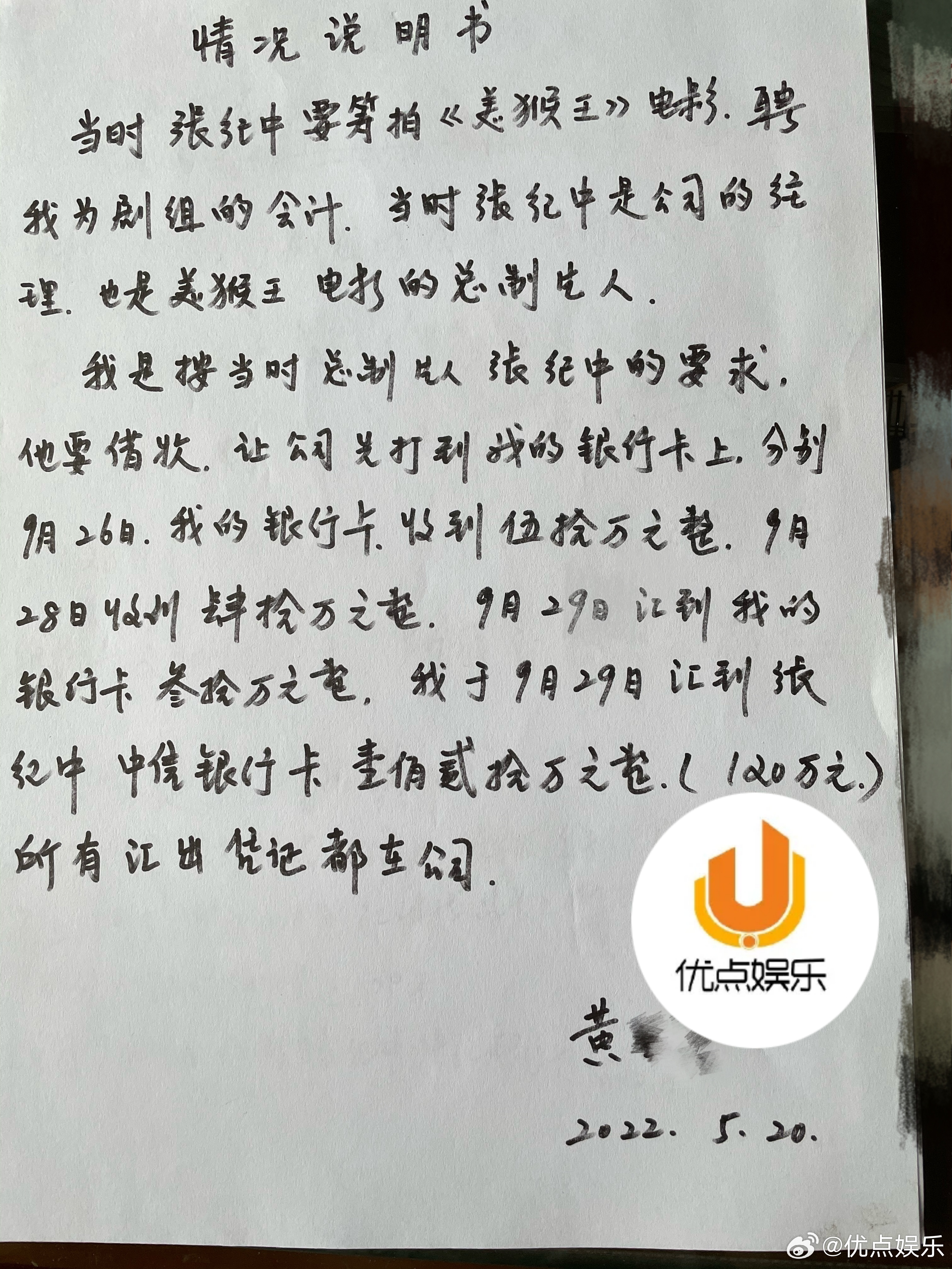 樊馨蔓晒证据反驳张纪中【樊馨蔓晒出证据,驳斥张纪中“诬告言论”】湖南美猴王影业公司报案指控原公司总经理张纪中涉嫌职务侵占后,采访张纪中表示“100%的诬告”。记者联系公司法人樊馨蔓,樊馨蔓提供其中两张银行的电子支付回单以及当时财务人员黄某某手写的情况说明书。