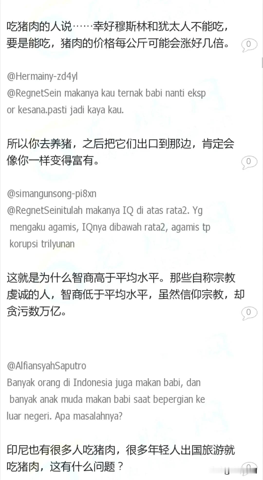 印尼网友关于中国的讨论,说明当你强大起来了,自然会有人主动帮你辩经,这个世界的人性基本都是慕强的,只有你强大了,很多话都不需要你自己去争辩,自然会有仰慕你的人,主动来帮你辩经!我们强大了,连印尼的穆斯林都觉得我们吃猪肉是对的,下面就是印尼网友关于我们吃猪肉的一个辩论!
