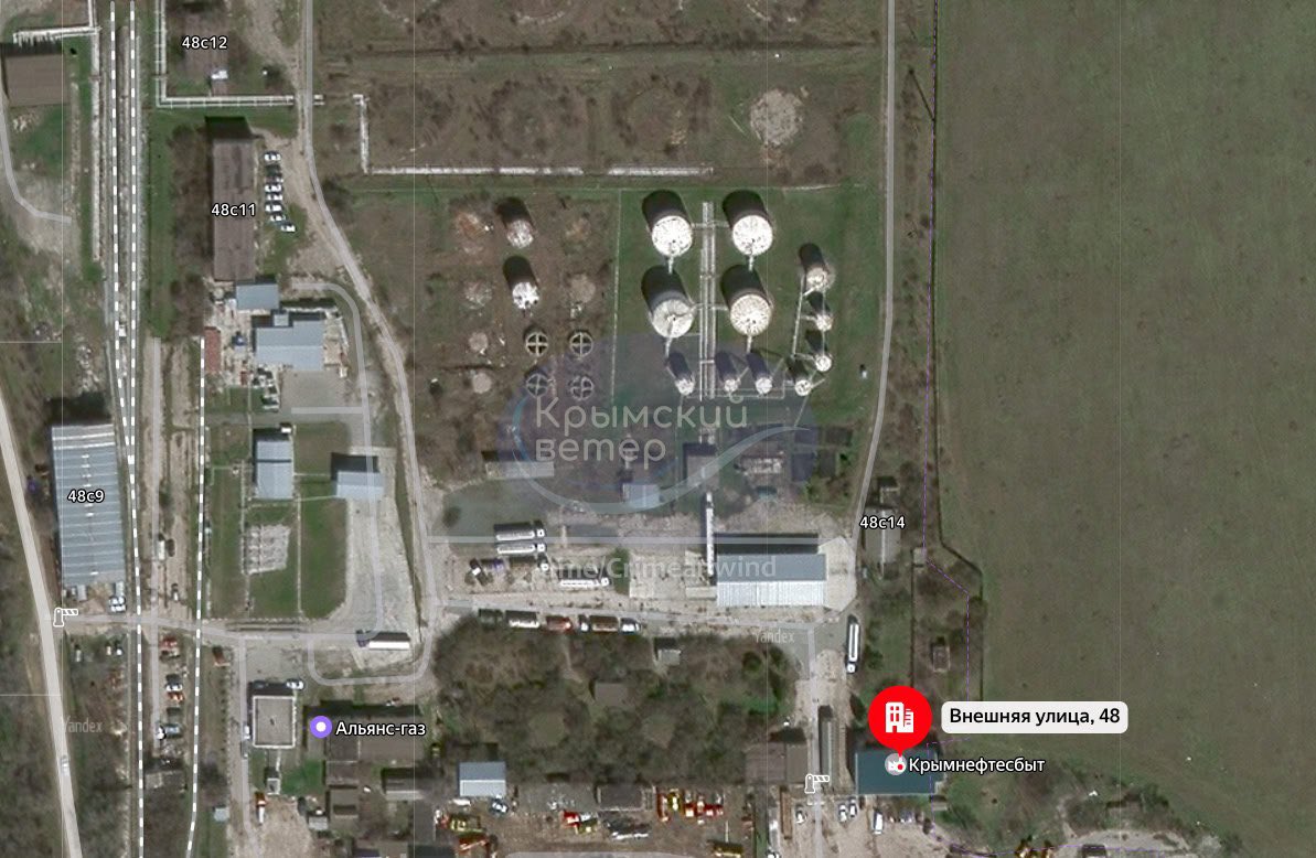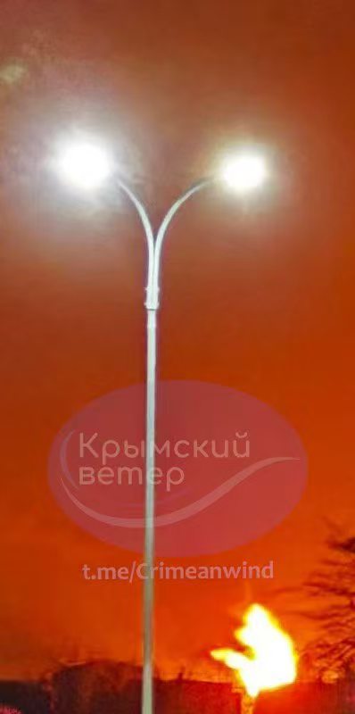 克里米亚的克里姆内夫特斯比特油库在夜间发生罢工后的情况